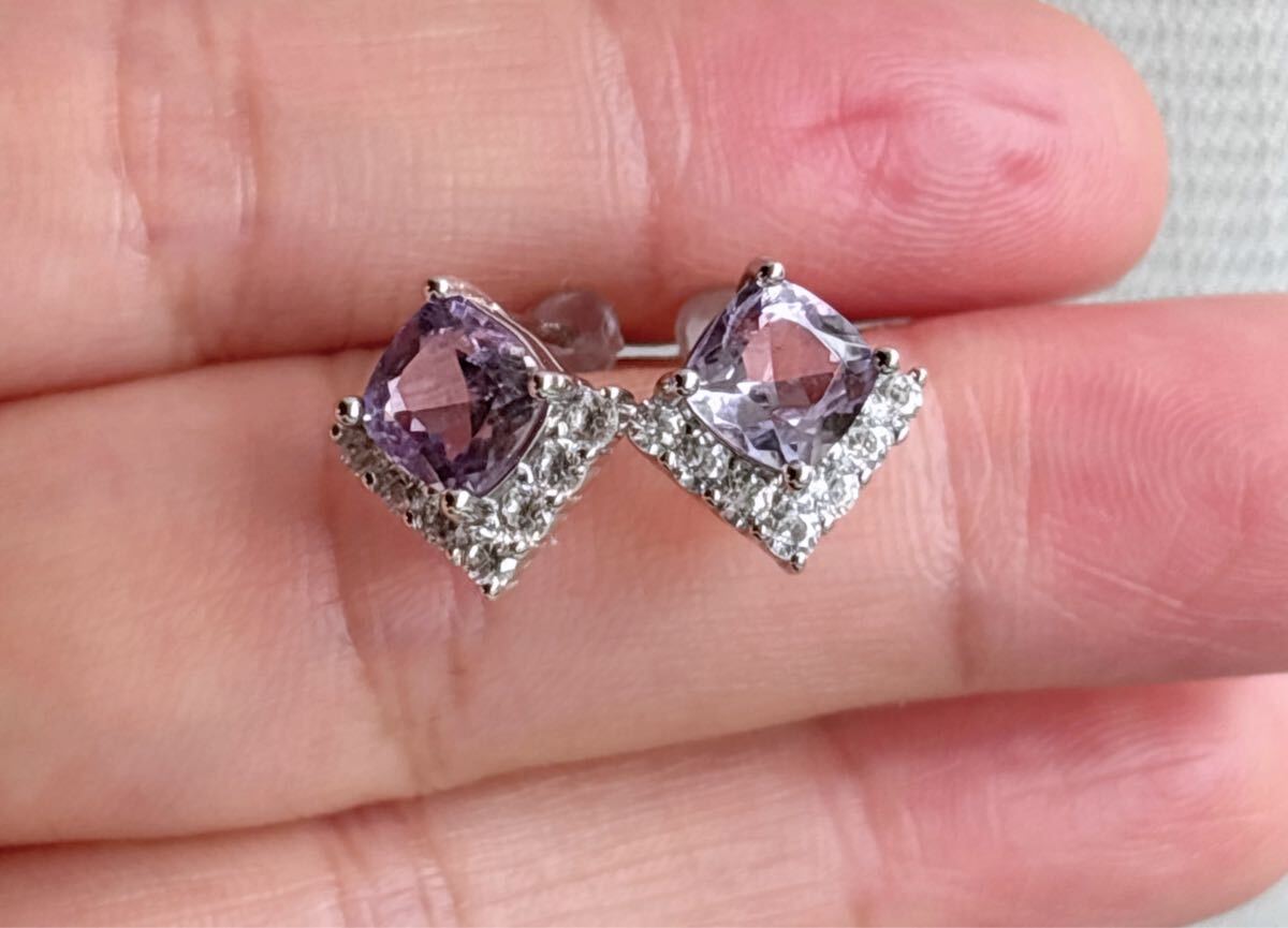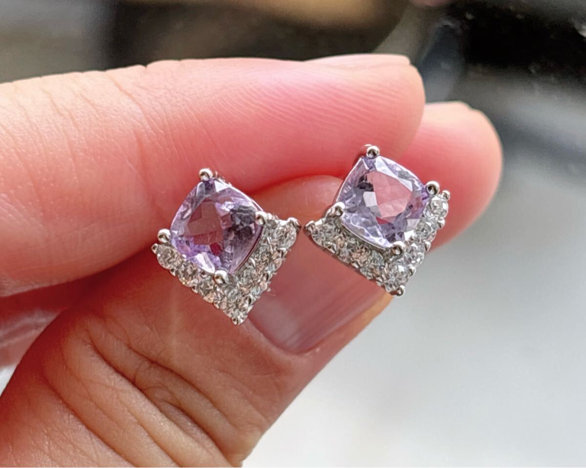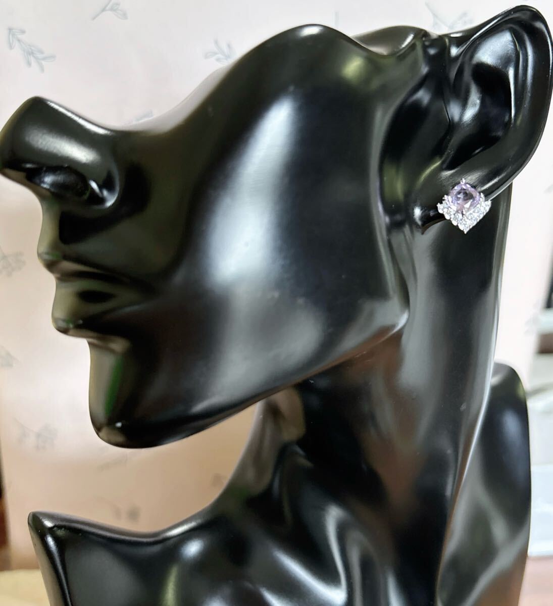 天然石 アメジスト(紫水晶)ピアスのサイズ約:9mm*9mm*厚さ4.6mm;