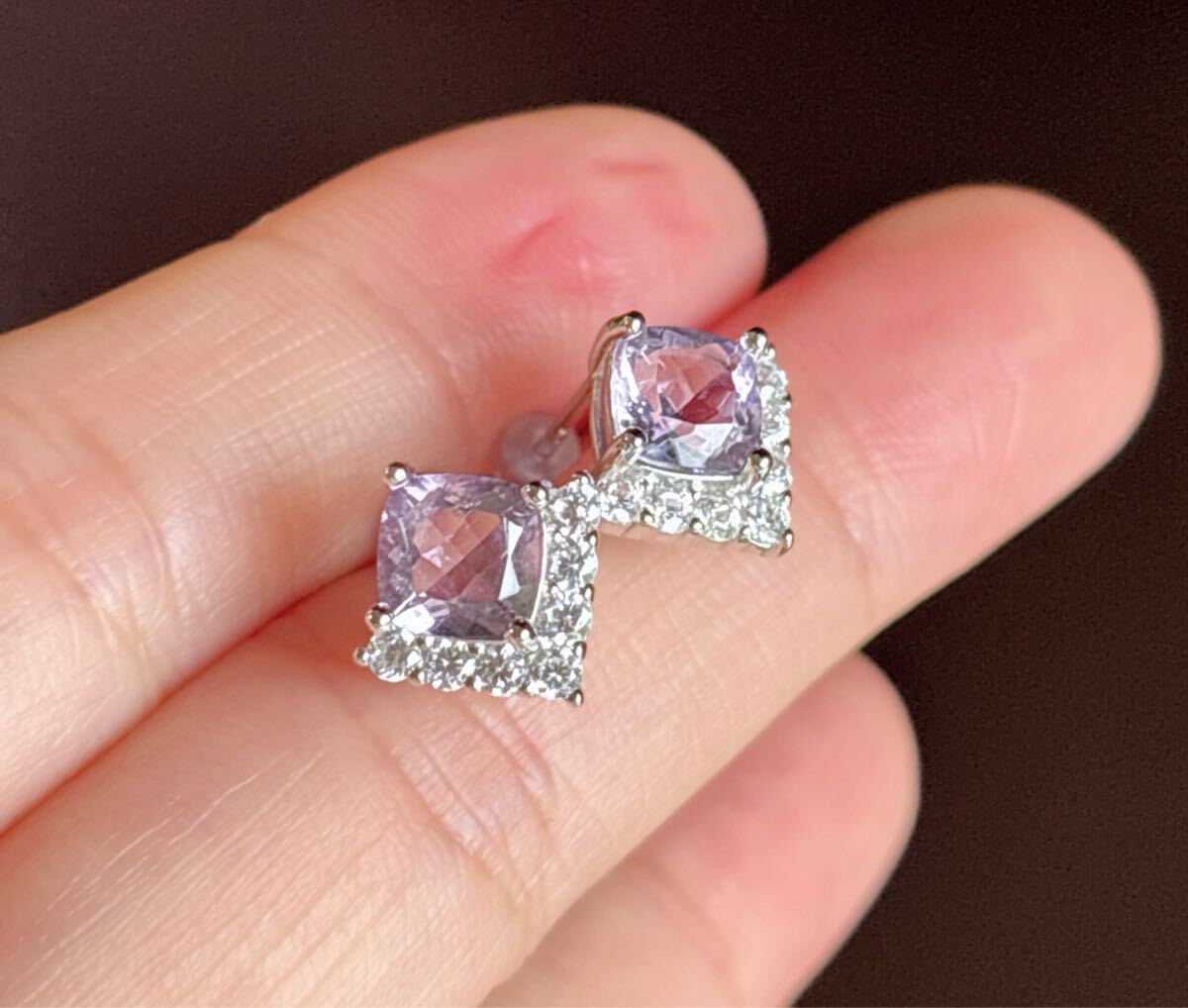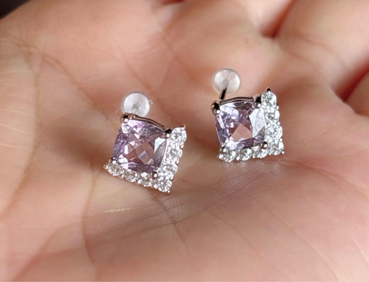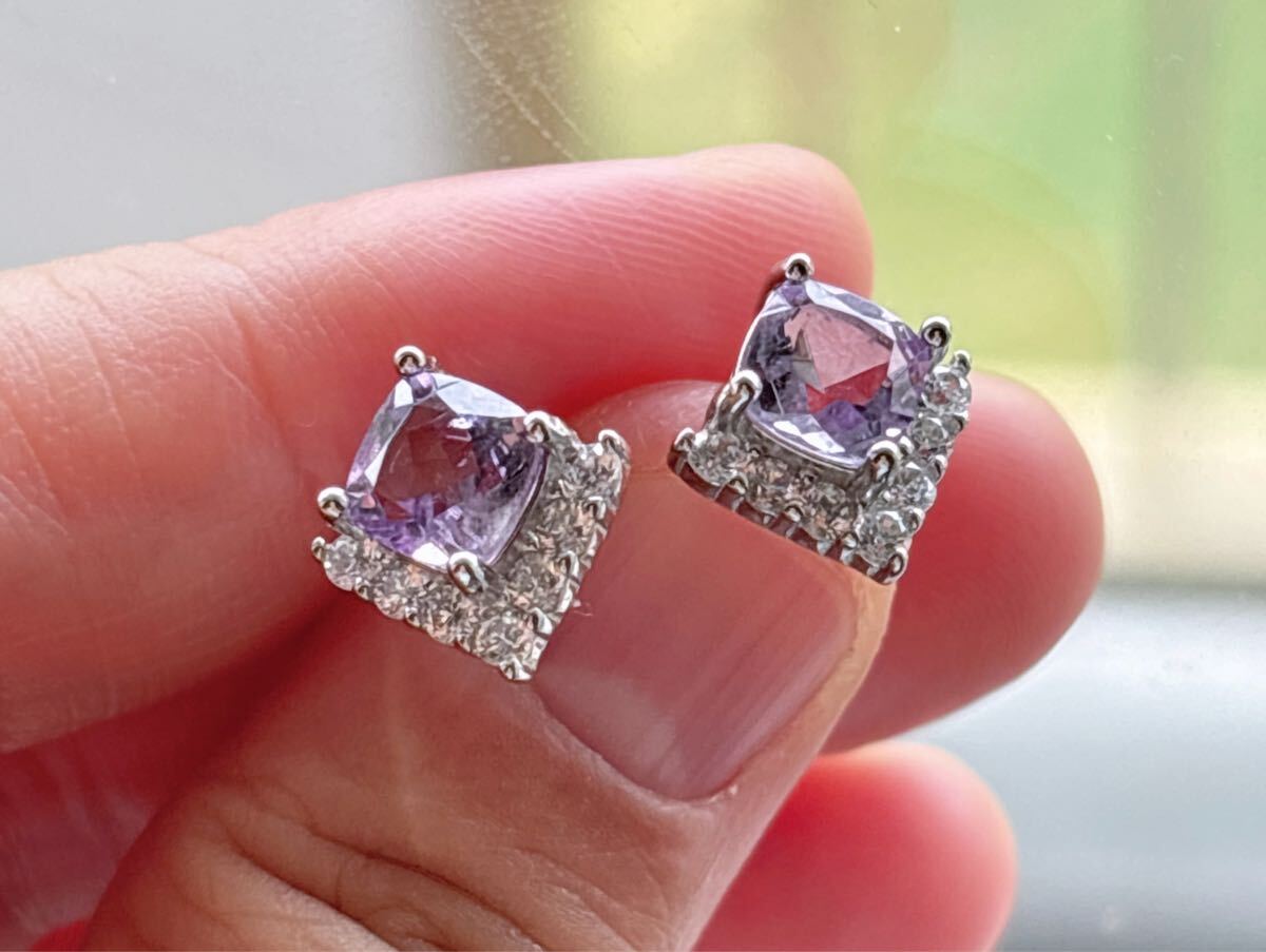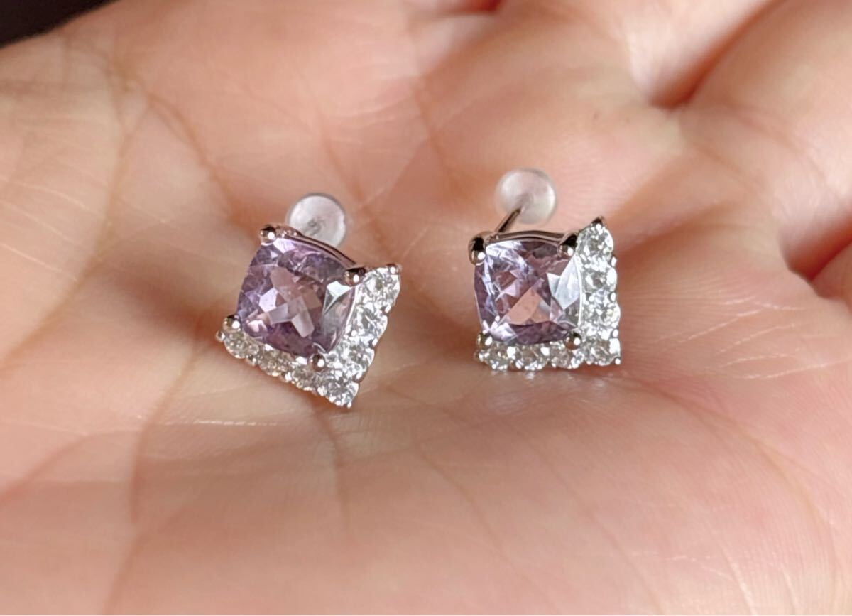 天然石 アメジスト(紫水晶)ピアスのサイズ約:9mm*9mm*厚さ4.6mm;