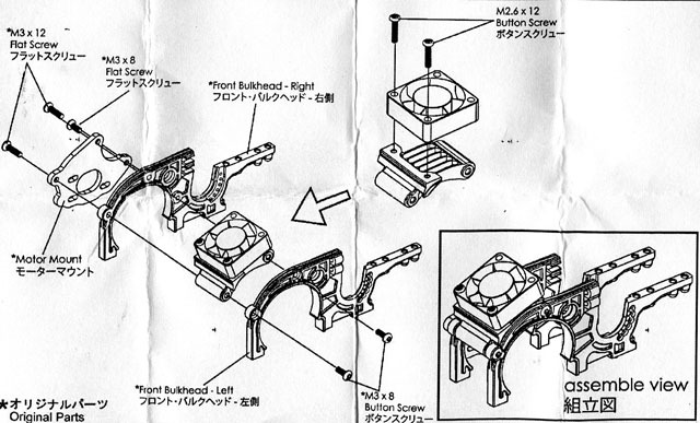 ・フロントバルクヘッドのM6X23アルミポストと交換しバルクヘッドに固定する事によりファンを装着可能。