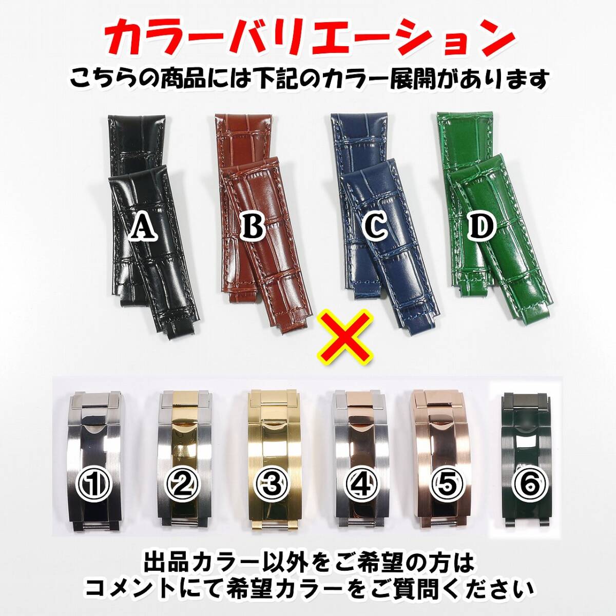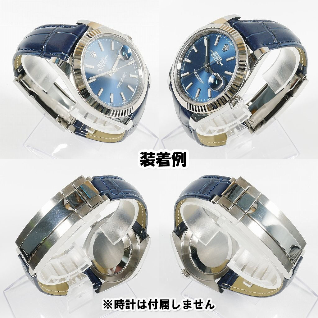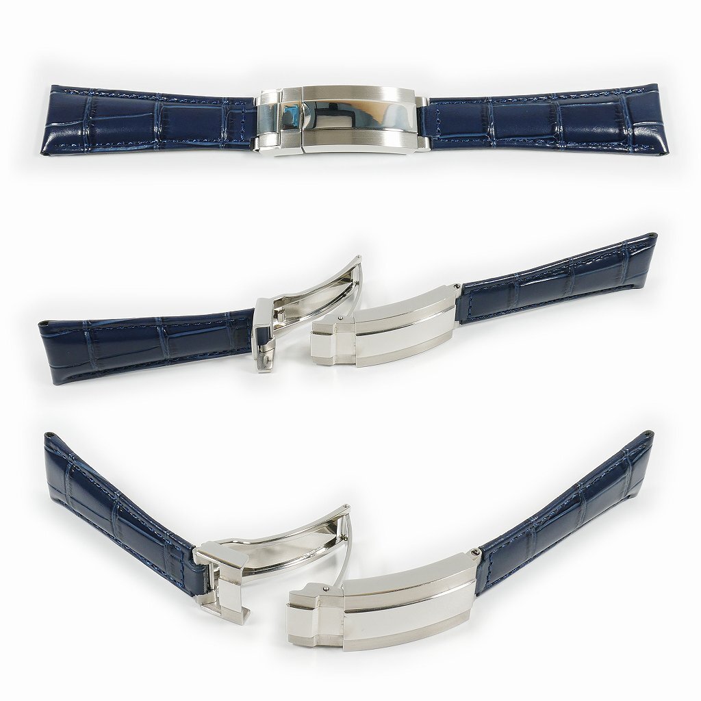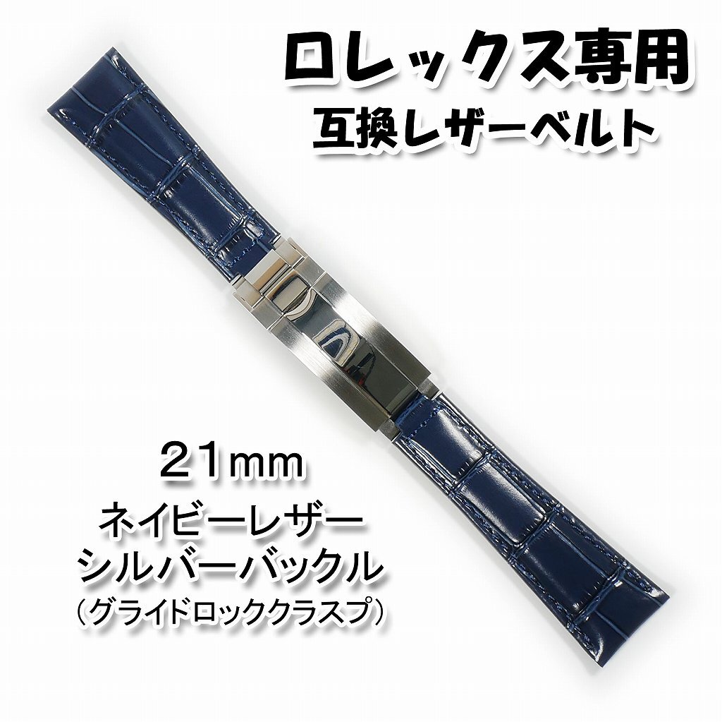 ロレックス専用(互換品) バックル(グライドロッククラスプ)付き レザーベルト ネイビー 21mm