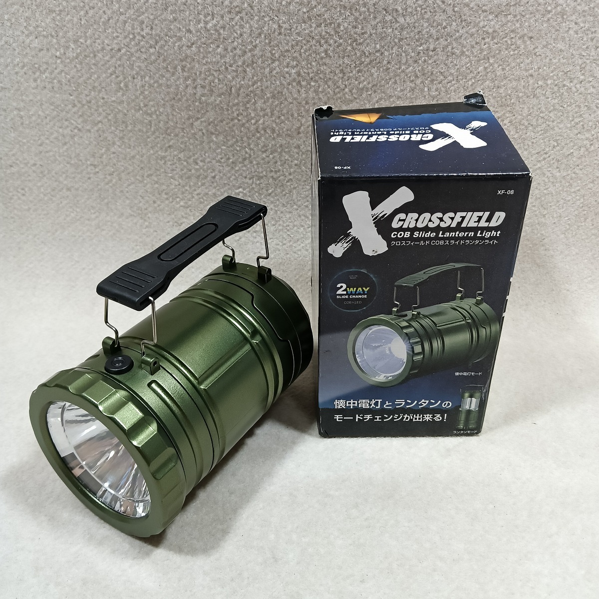 ●○2WAY仕様 LEDランタン モスグリーン CROSSFIELD COBスライドランタンライト XF-08○●