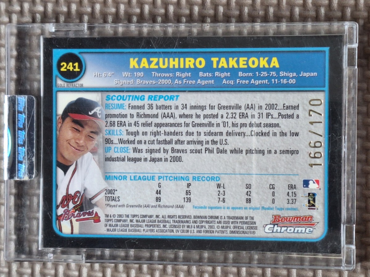 2003 Bowman Chrome #241 KAZUHIRO TAKEOKA RC 1st Year Card Gold Refractor 166/170 Uncirculated Atlanta Braves