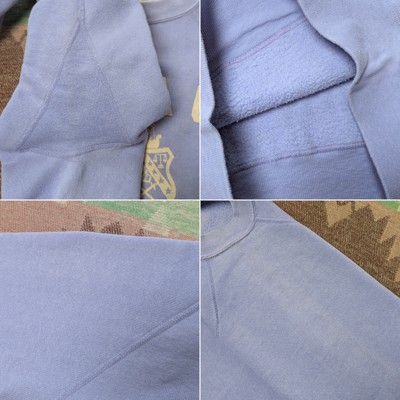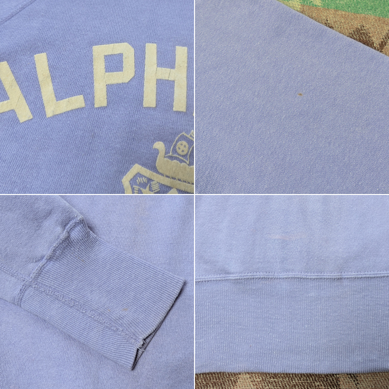 ラベンダーのような淡い薄紫色。なかなか珍しいカラーかつノーダメージの良いOLDスウェットです。