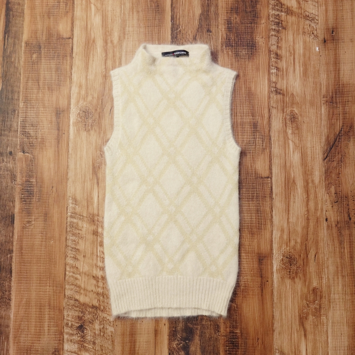 美品 adesso CERCHIO アンゴラ混 アーガイル柄 ハイネックニットベスト レディース ふわふわ ダイヤ柄 レイヤード Mサイズ アイボリー LH40