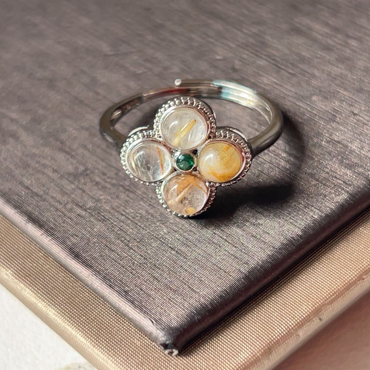 ◇チタンルチルクォーツ(金針水晶)◇キャッツアイ効果◇指輪◇パワーストーン◇天然石◇巾着袋付き◇プレゼントに037R5237