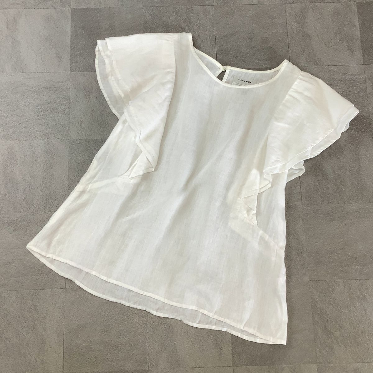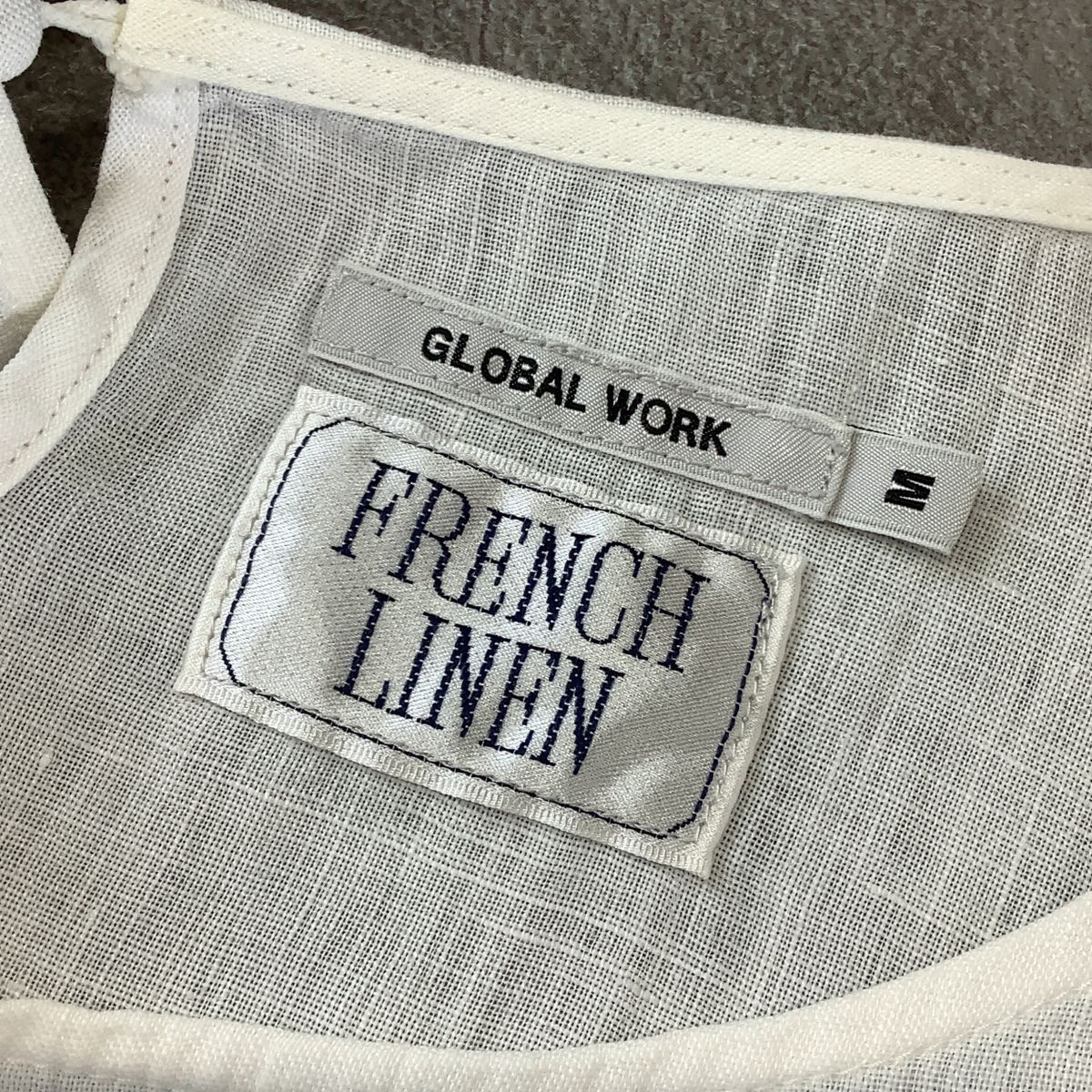 【爽やかな高級フレンチリネン100%】GLOBAL WORK グローバルワーク リネンブラウス レディース M ホワイト