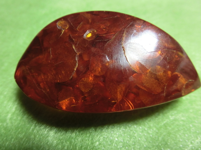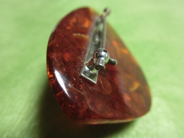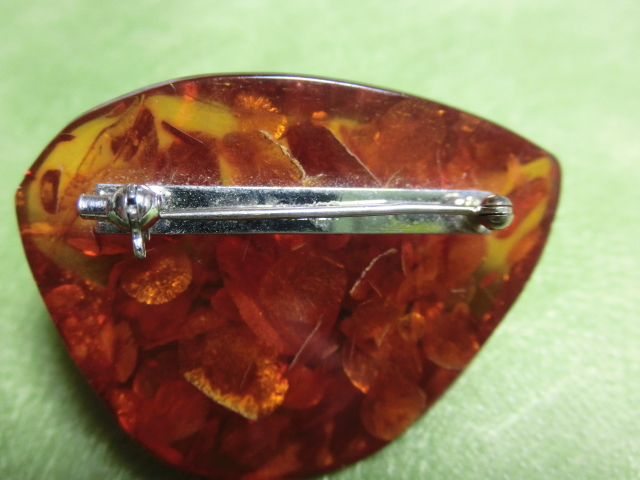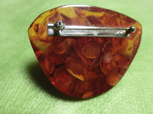 ■USED:留め具SILVER大きなコハクブローチ   Tn432