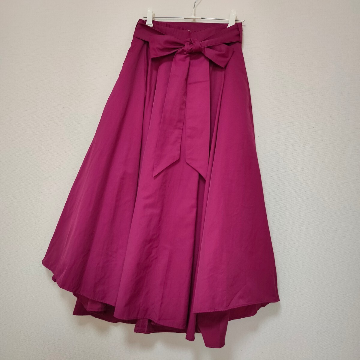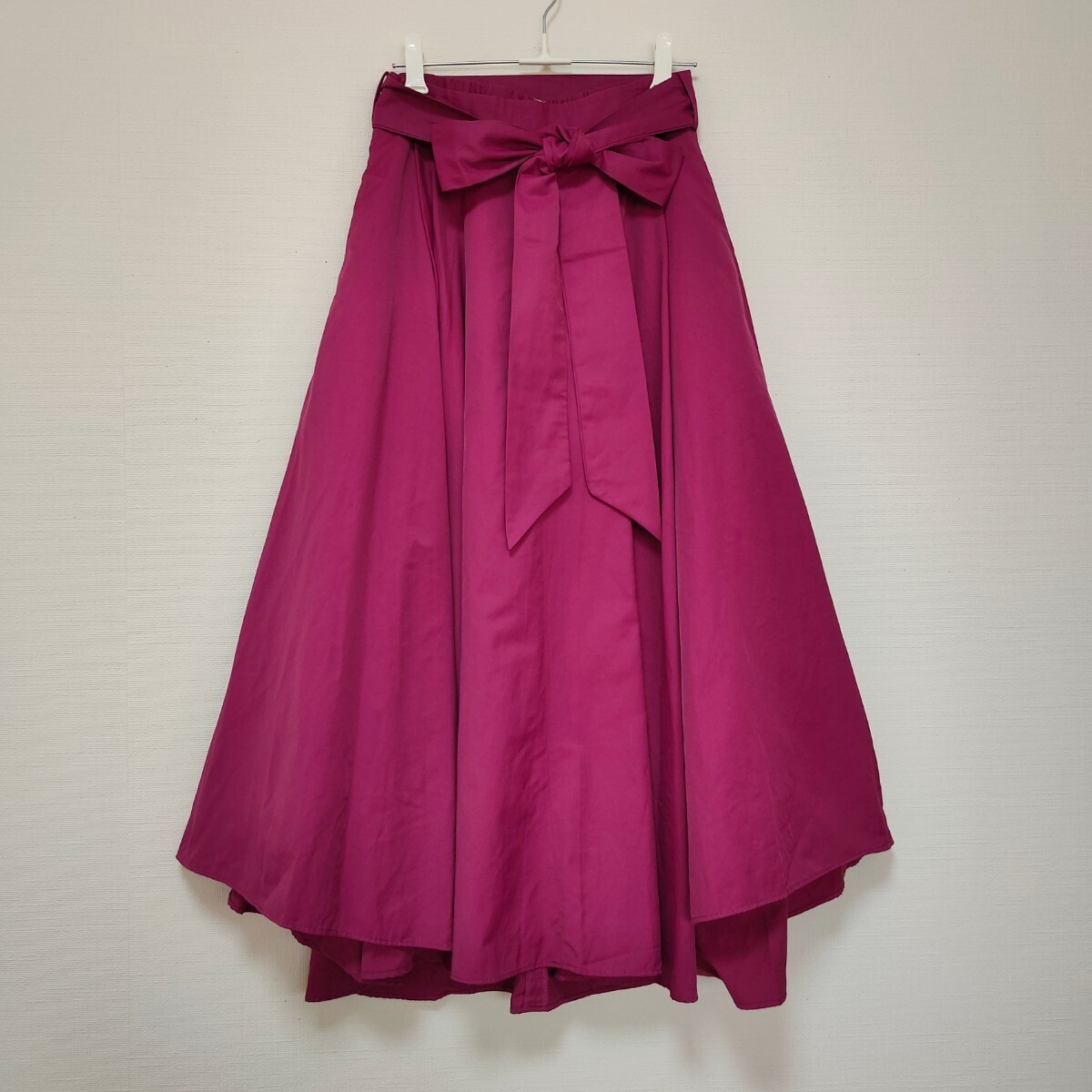 美品 ケービーエフプラス KBF+ フレア ロングスカート イレヘム リボンベルト アーバンリサーチ スカート タック