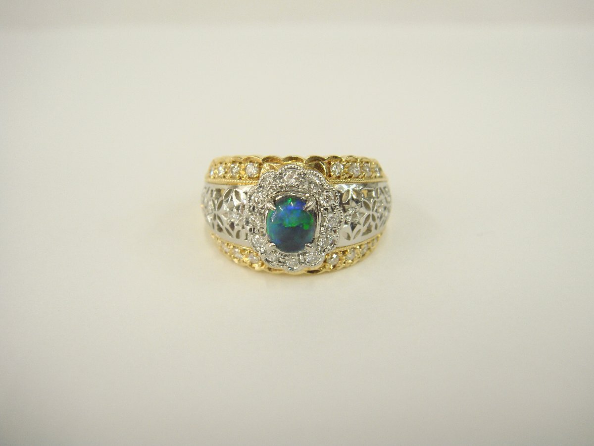 商品 | K18 PT900 ブラックオパール0.29ct / ダイヤ0.36ct 指輪 リング 14号 (約)5.6g 研磨仕上げ済 |