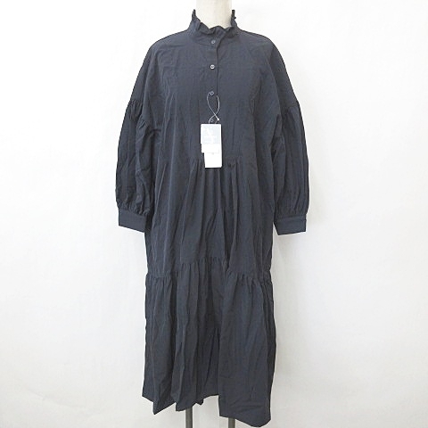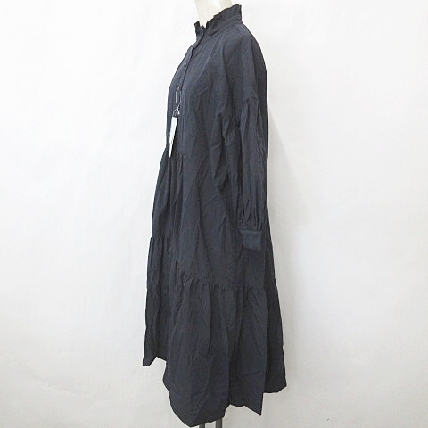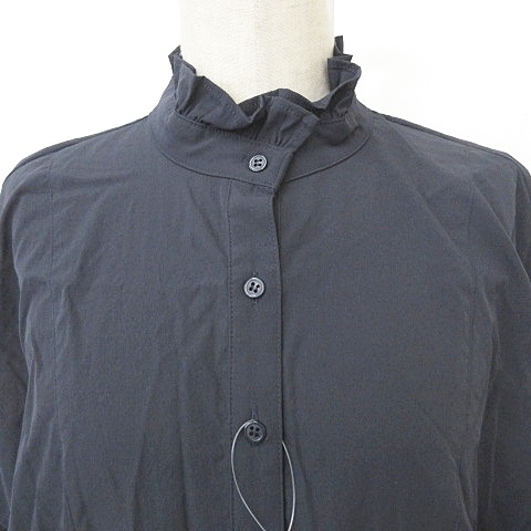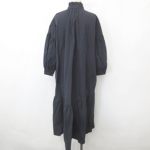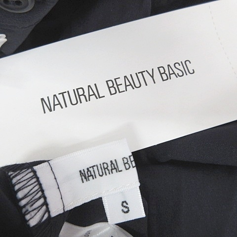 未使用品 ナチュラルビューティーベーシック NATURAL BEAUTY BASIC ワンピース チュニック 長袖 ドロップショルダー フリル ネイビー S