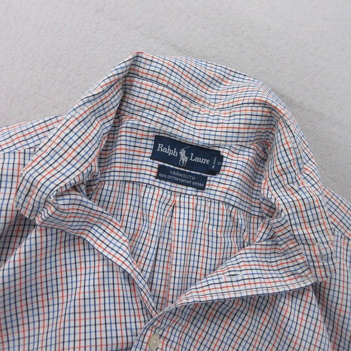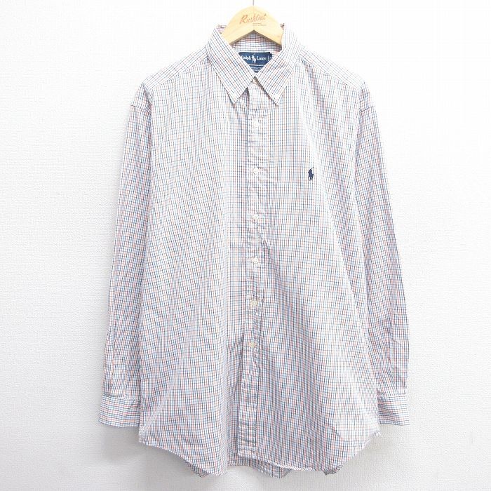 【商品名】 XL★古着 ラルフローレン 長袖 ブランド シャツ メンズ 90年代 90s ワンポイントロゴ YARMOUTH オックスフォード 大きいサイズ ロング丈 コットン ボタンダウン 白他 チェック