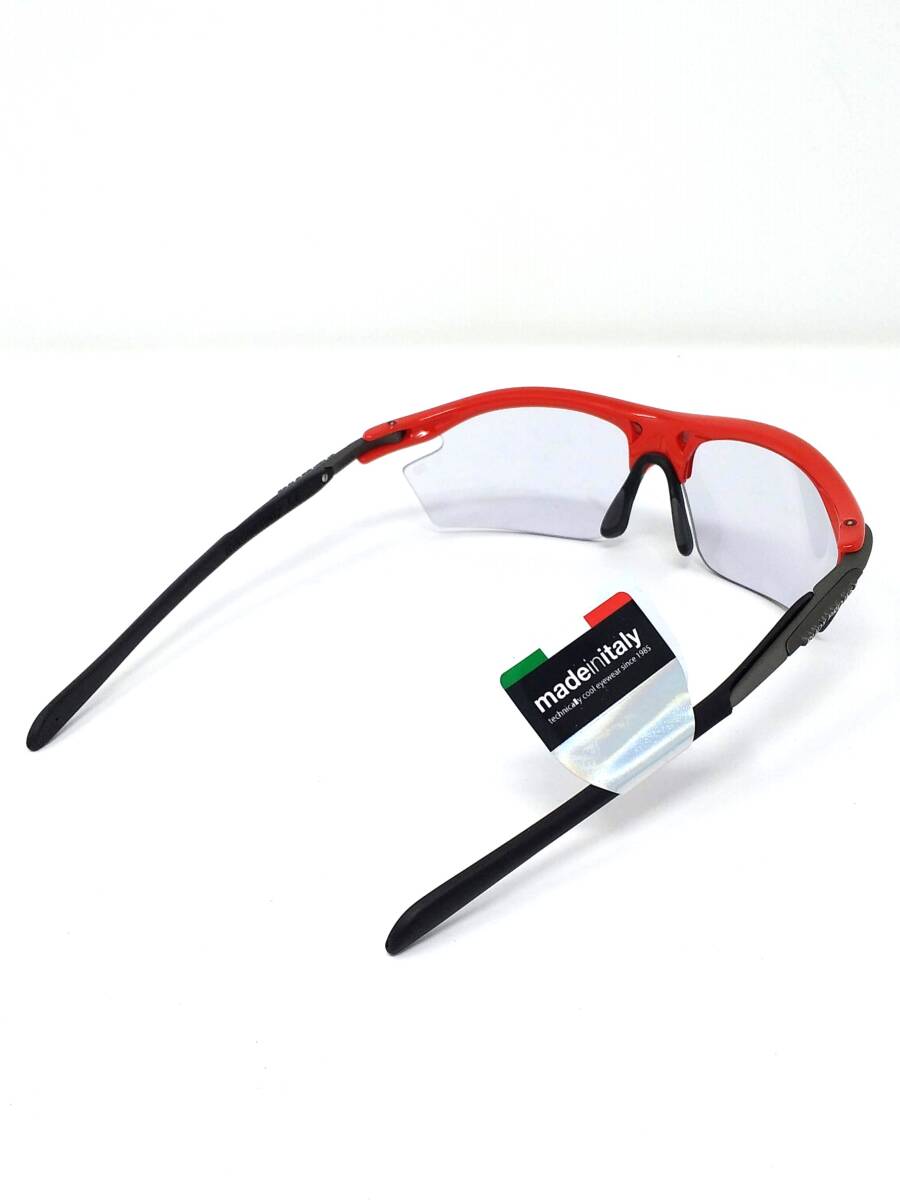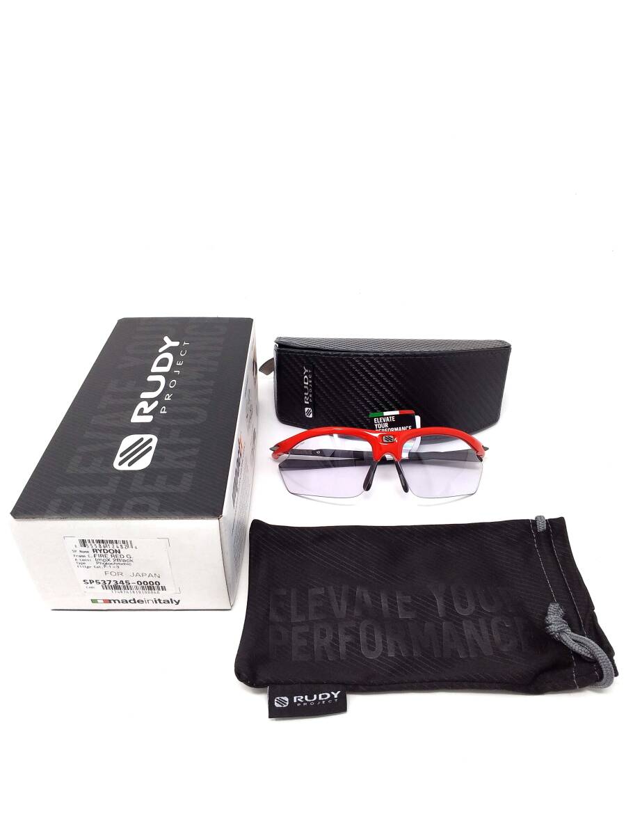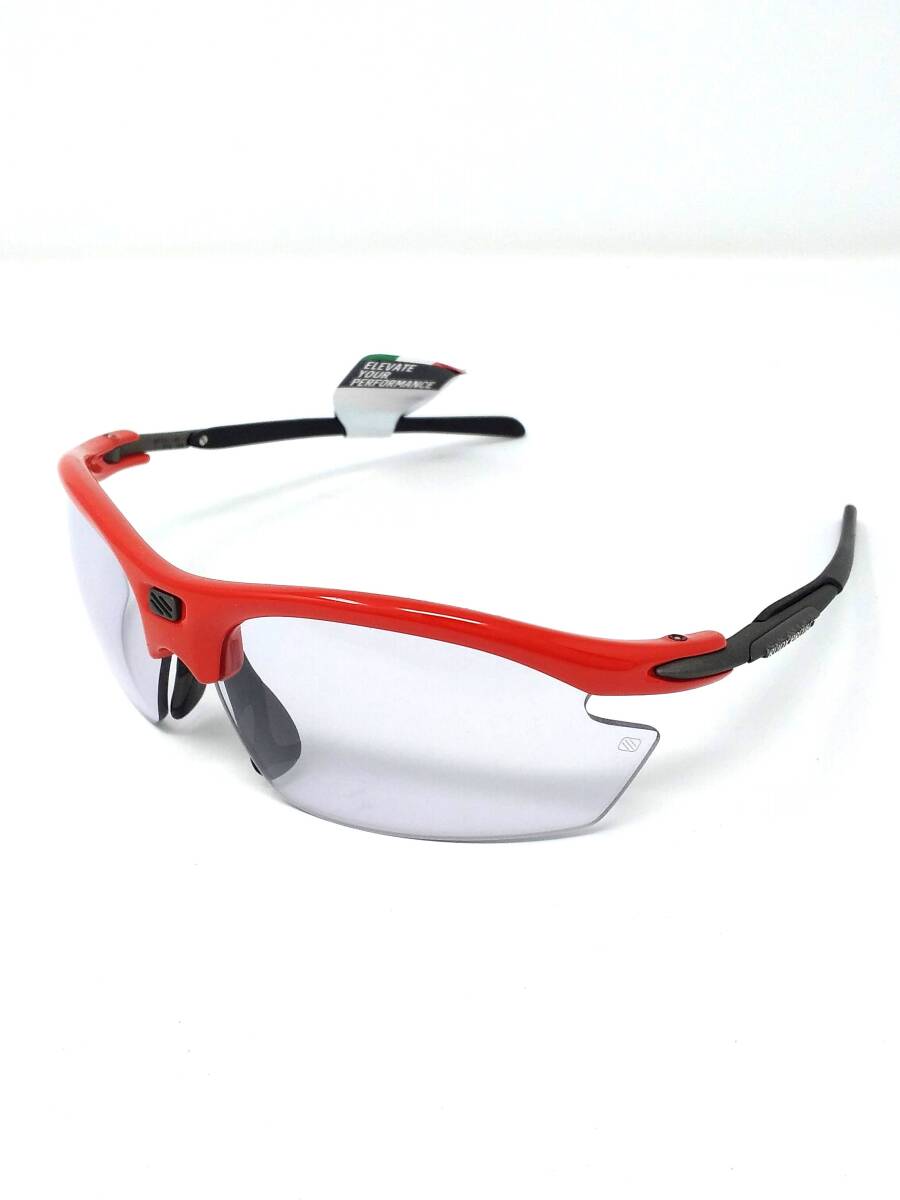 ルディプロジェクトのロングセラー、定番のモデルです!!新品、未使用、未着用です。正規輸入品です。付属品、箱や説明書などすべてそろっています。購入時の状態です。定価は27500円です。サングラス本体は、レッドのフレームにクリアからグレイに変化する調光レンズです。日差しの強さで自然にレンズカラーが変わるので、朝から夕方までかけ続けても違和感なくストレスもありません!!レンズの下側にはフレームもないので、視界が広く、ストレスフリーです!!顔の形状に合わせてノーズが自由に調整でき、しっかりと顔にフィットします。もちろん軽量で頑丈です!!!