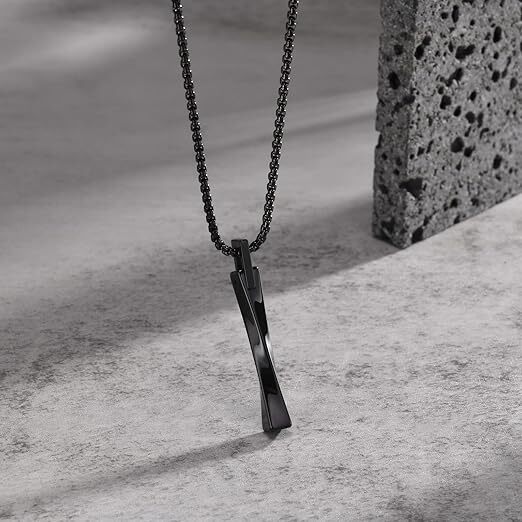 • メンズネックレスの定番のツイストスティックデザインになります。ツイストされたボディは光の反射により輝きを放ち、先端部分のエッジを効かせたデザインが高級感を演出します。