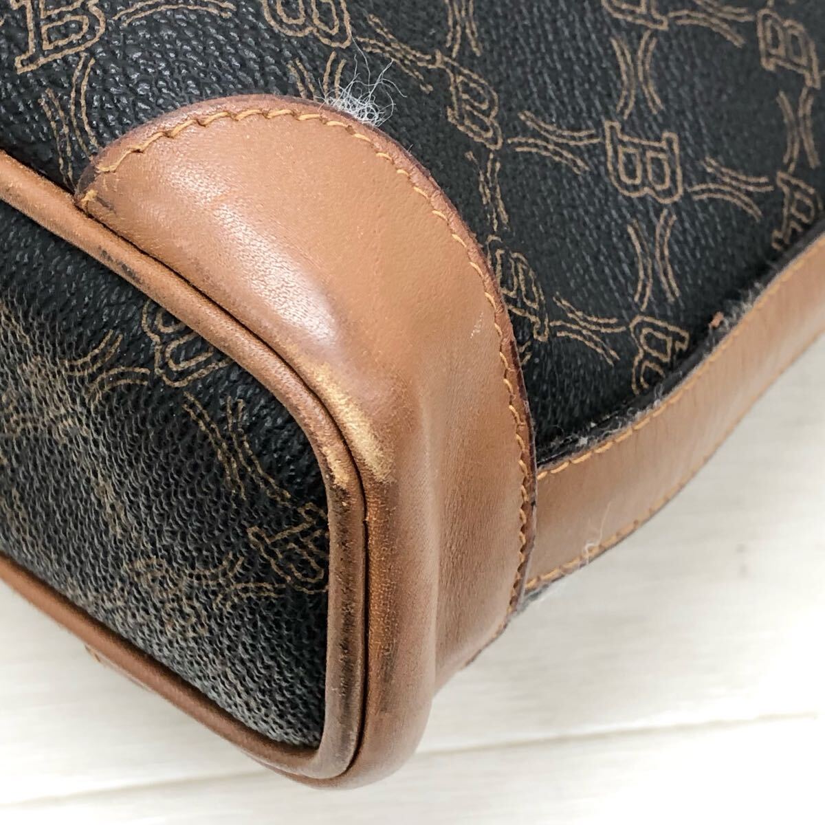 ショルダー紐のコバに割れ、剥がれ、繊維の張り付きなどあります。