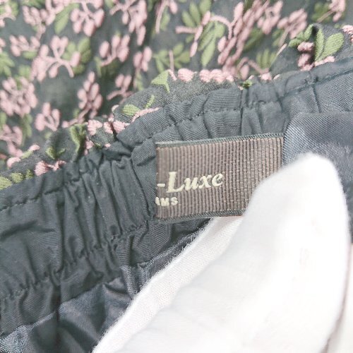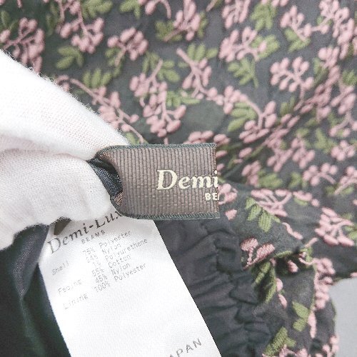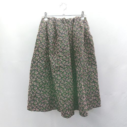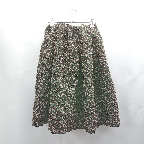◇ Θ Demi-Luxe BEAMS ポコポコ花柄 ウエストゴム 膝丈 台形 スカート サイズ36 ブラック ピンク系 レディース E