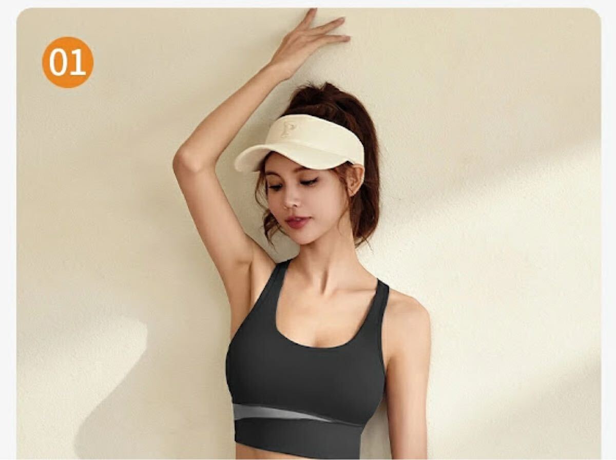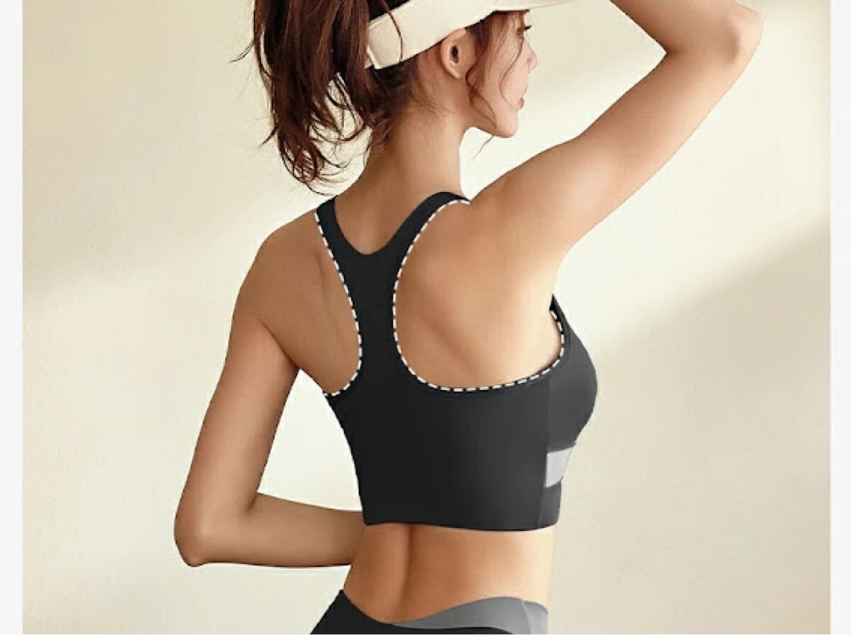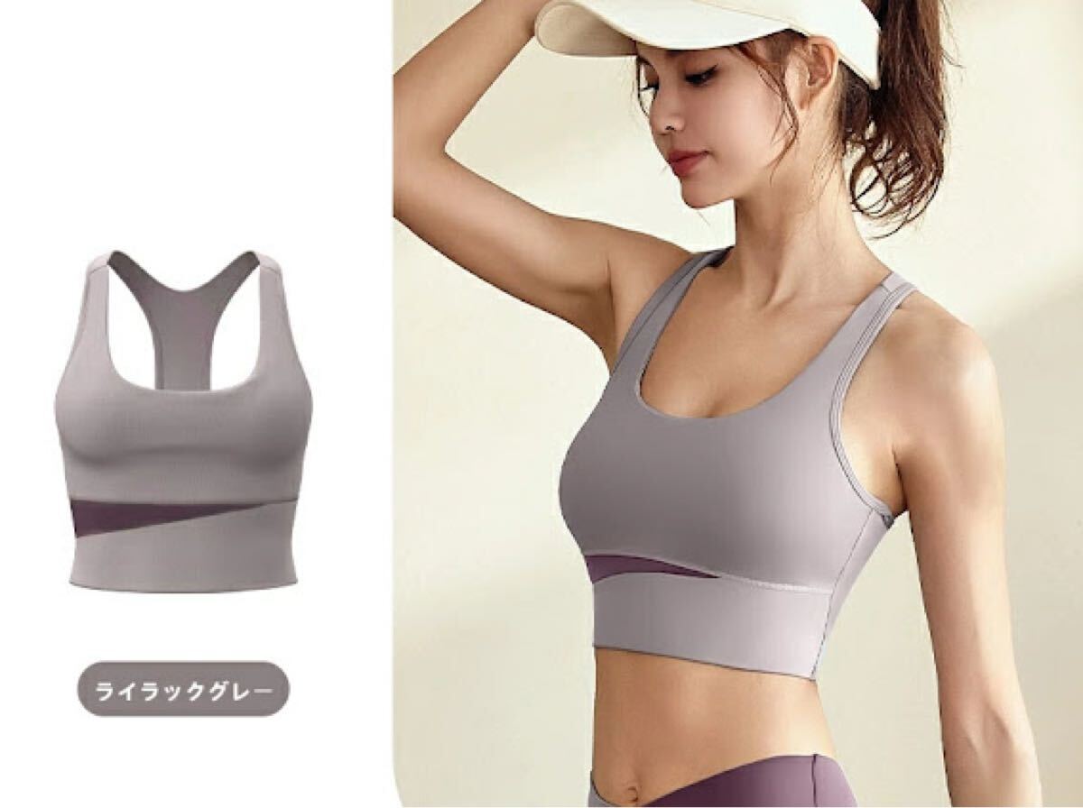 高い弾力性と快適な着心地を提供するブラックのヨガブラ。
