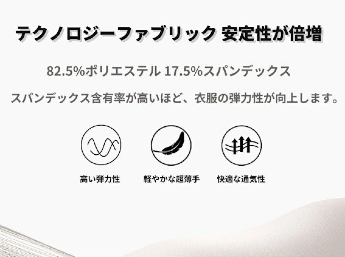 - 素材: 82.5%ポリエステル、17.5%スパンデックス