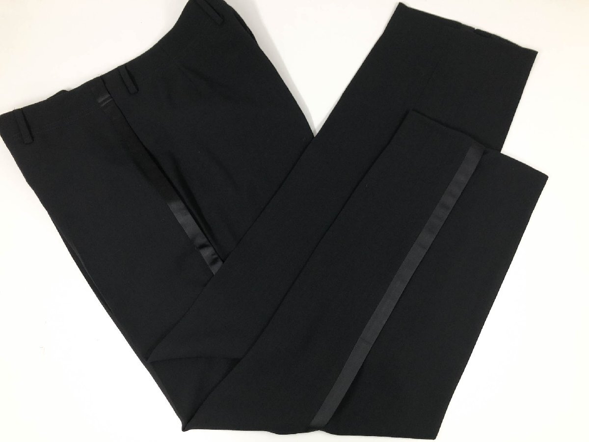 ・スラックス・・・ウエスト実寸約90センチ(4センチ出し、4センチ詰め可能)、股上約26センチ、渡り幅約37センチ、股下約77センチ、総丈約102センチ、裾幅約21.5センチ、シングル仕上げ(最大でプラス3センチ長くできます)