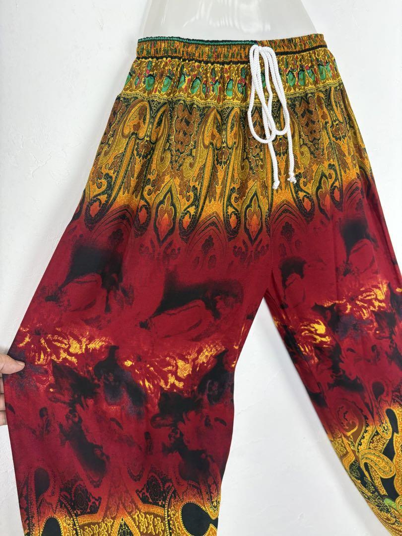 【新品】アラジンパンツ タイパンツ ヨガ タイマッサージ レーヨン サルエルパンツ ゴムヒモ 970 Y386 ワイン