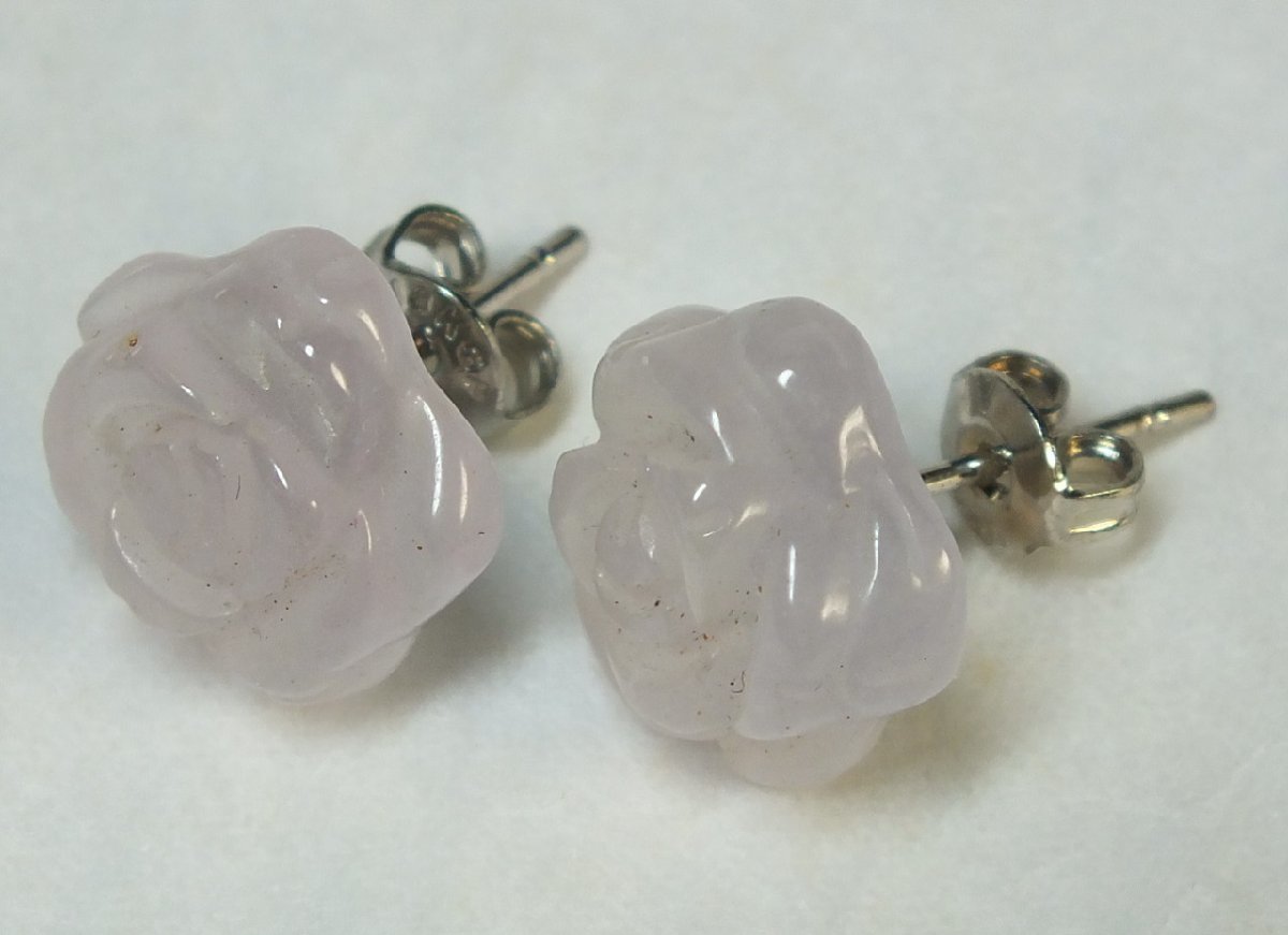 ▲▽■龍香堂■ミャンマー翡翠 薔薇ピアス(淡紫)p5即決*△▼ | |