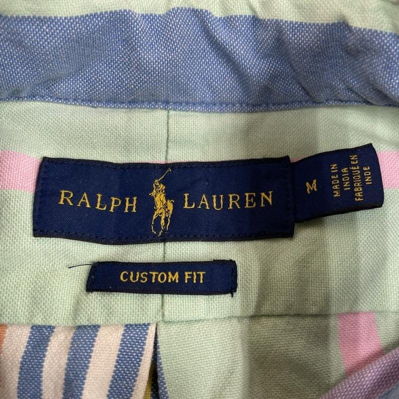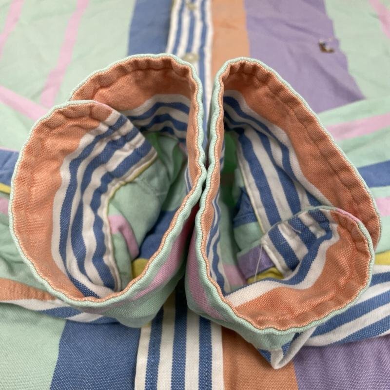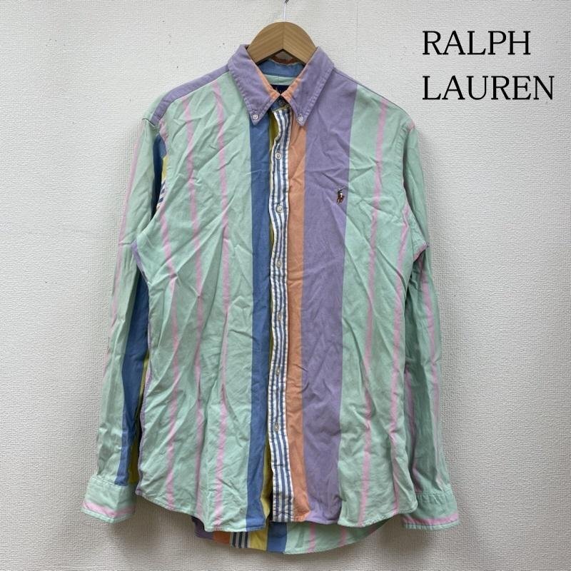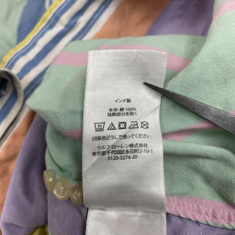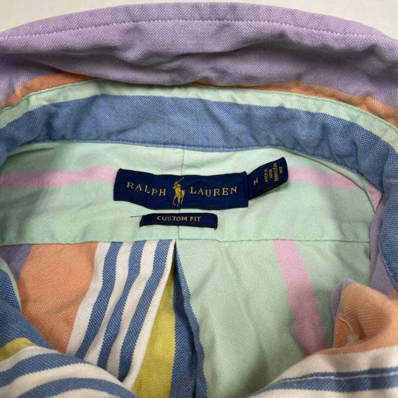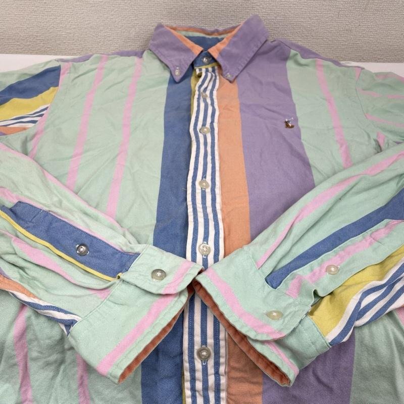 ラルフローレン 長袖 パステルカラー マルチストライプ ボタンダウン シャツ ロゴ 刺繍 ワンポイント M