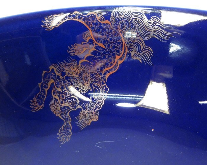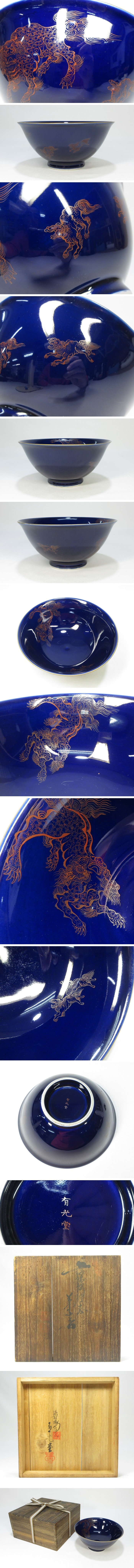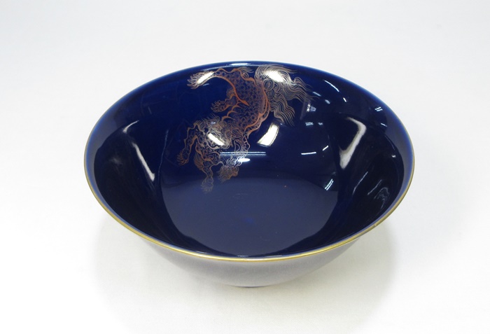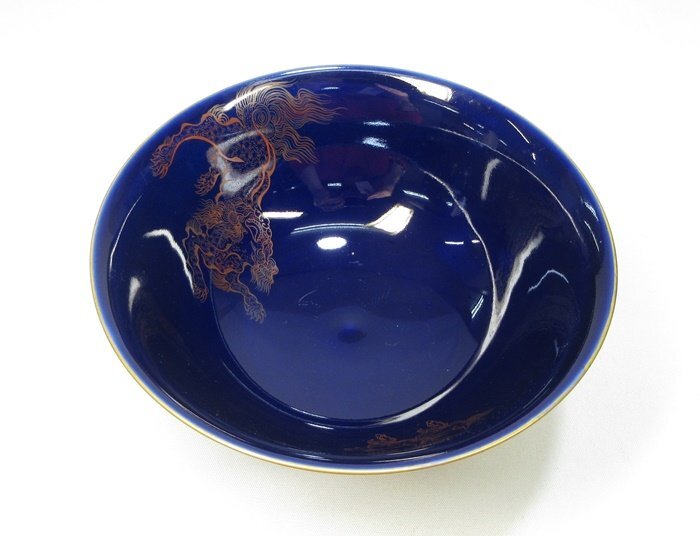 【A1867】有田焼 有光堂 池田儀右衛門 瑠璃錦獅子絵 菓子器 菓子鉢 大正期 共箱