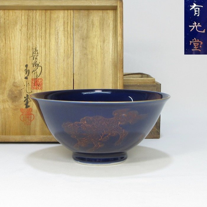 こちらは 有田焼 有光堂 池田儀右衛門 瑠璃錦獅子絵 菓子器 菓子鉢 大正期 共箱 です。
