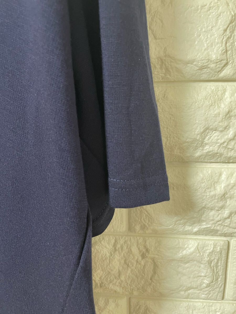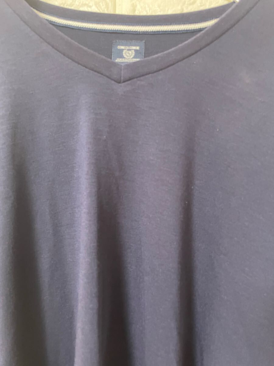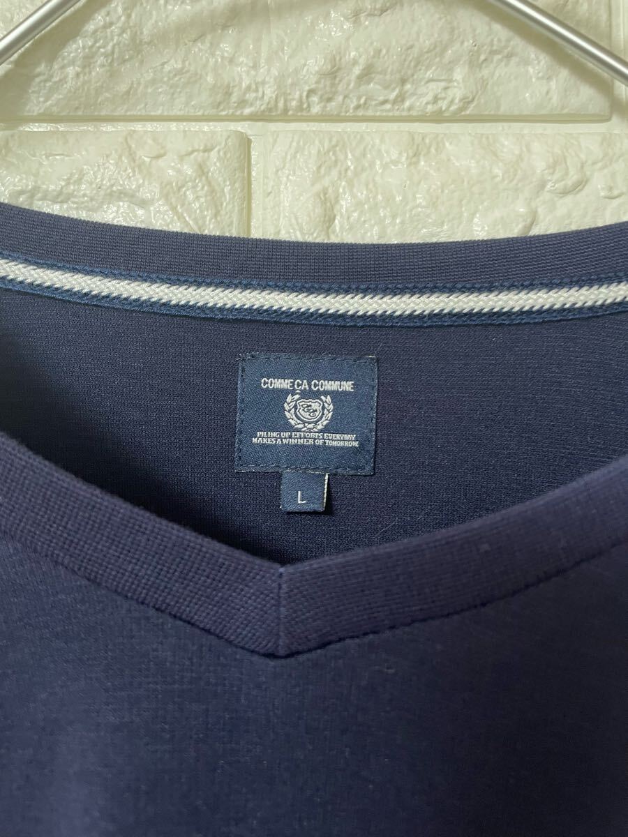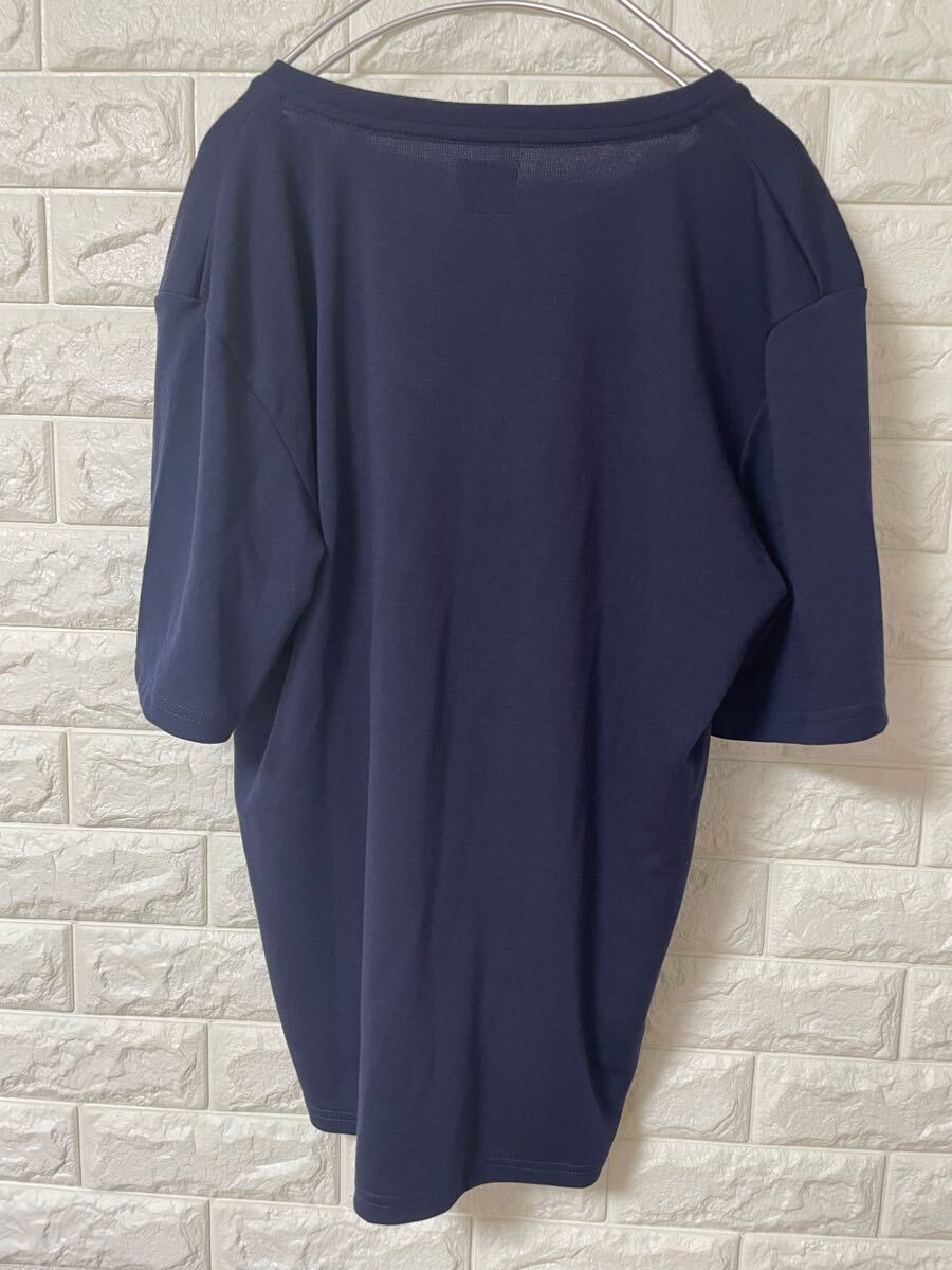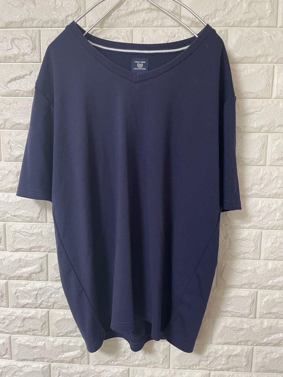 ネイビーのVネックTシャツ、サイズL、シンプルで使いやすいデザイン。