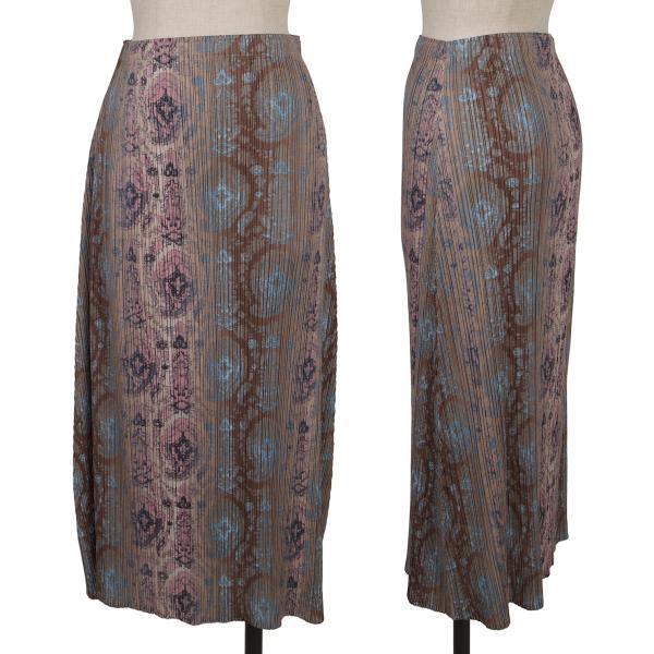 プリーツプリーズPLEATS PLEASE ペイズリープリントプリーツスカート ベージュマルチ2 |