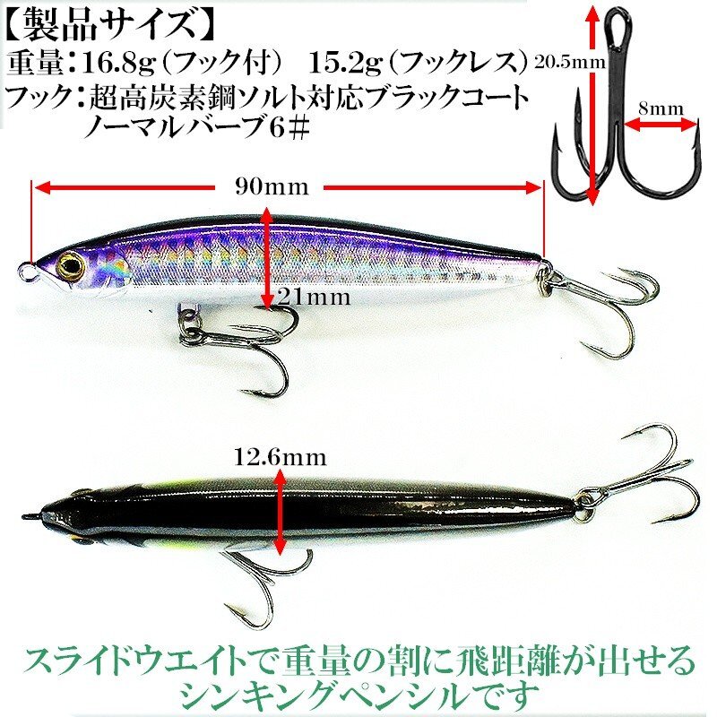 スライドウエイト搭載 シンキングペンシル 17g 90mm ジギンガーZ Side Winder サイドワインダー ルアー ソルトルアー 【アユ】
