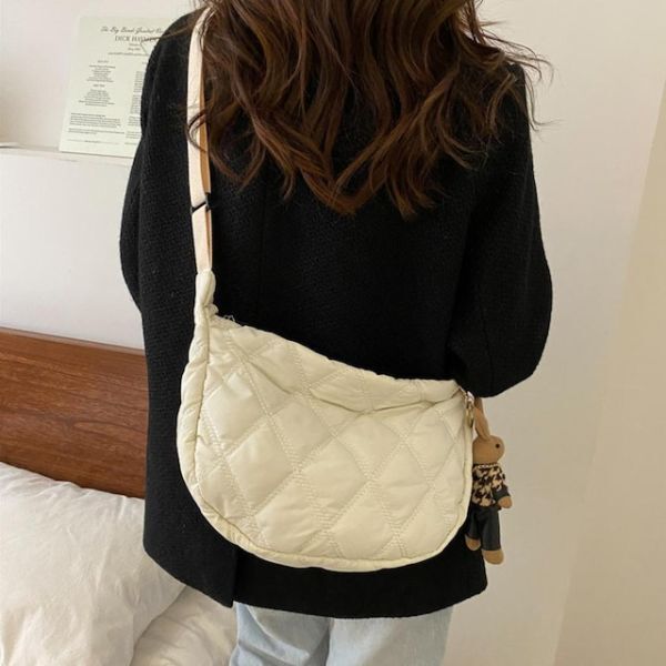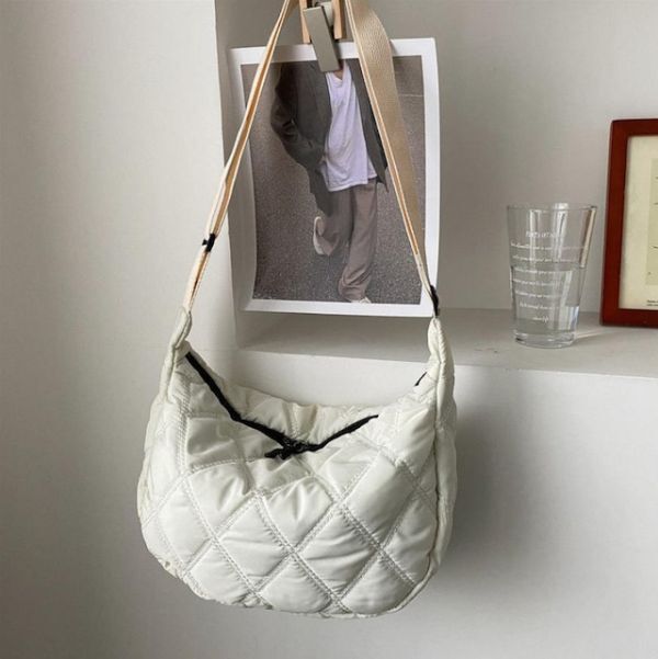 ショルダーバッグ メッセンジャーバッグ 斜めがけ 大容量 キルティング レディース シンプル 軽量 おしゃれ 大きめ 白 ホワイト ナイロン ダブルファスナー マザーズバッグ