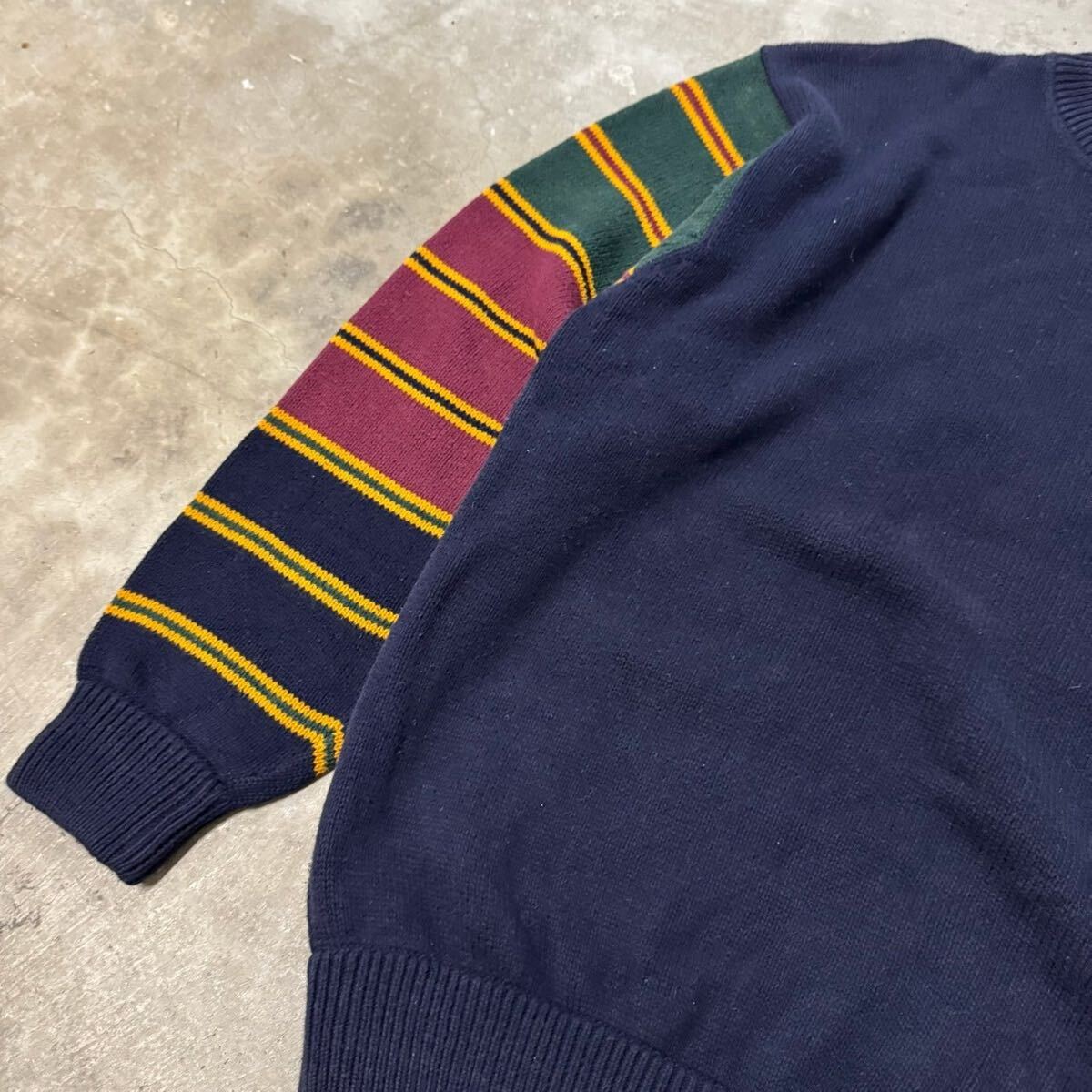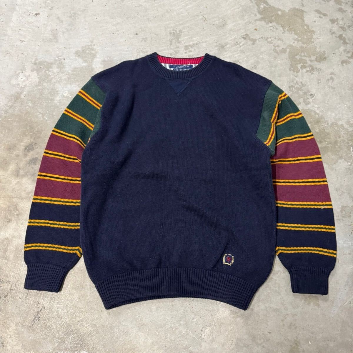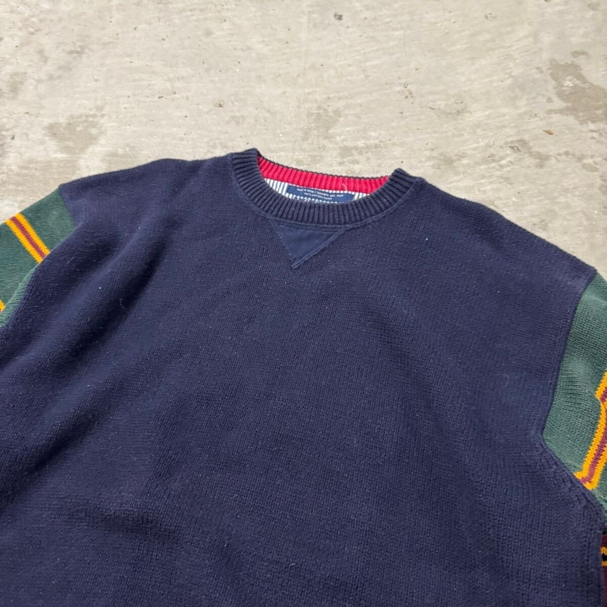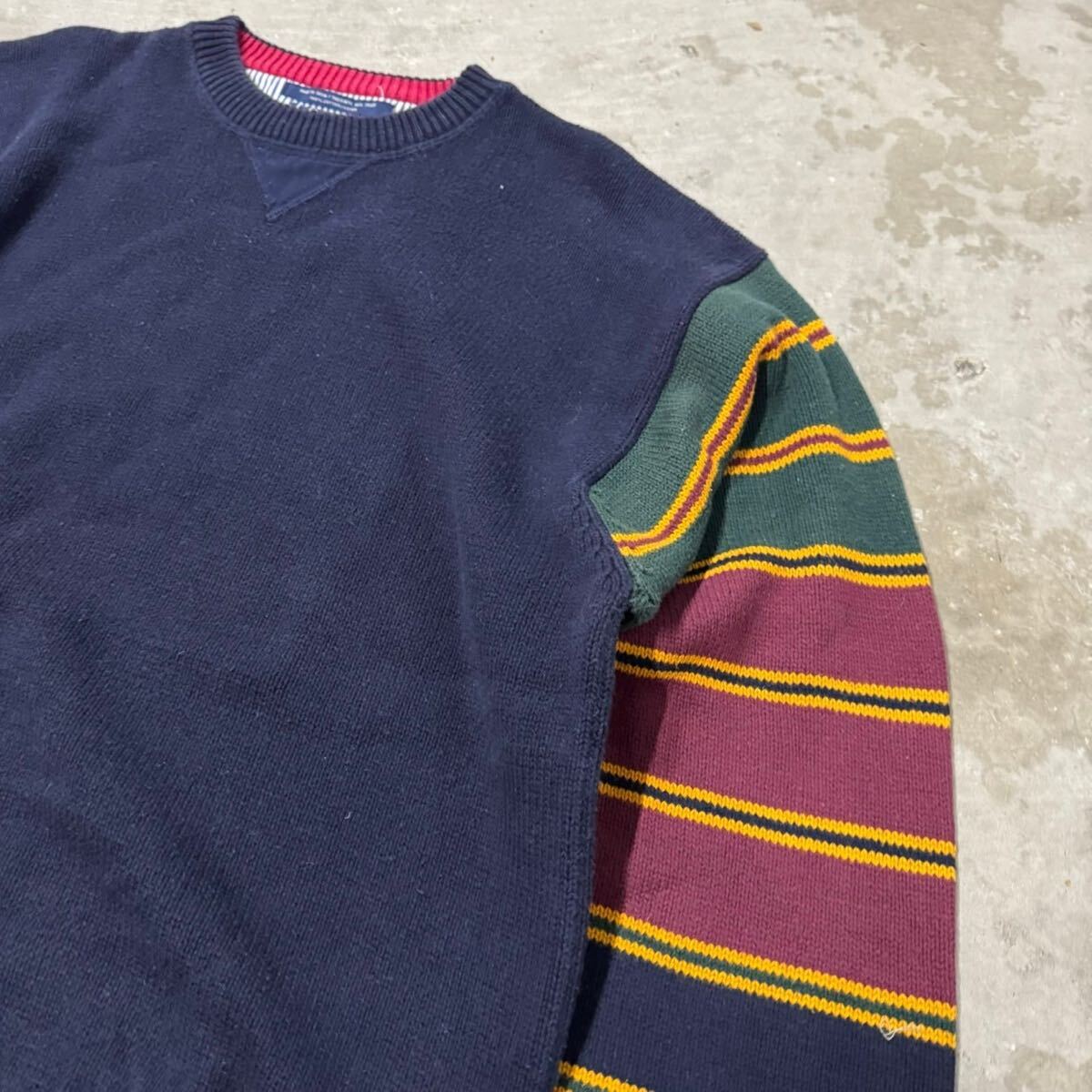90s 00s Tommy Hilfiger コットンニット ネイビー ボーダー トミーヒルフィガー ヴィンテージ セーター ニットセーター 袖ボーダー Lサイズ