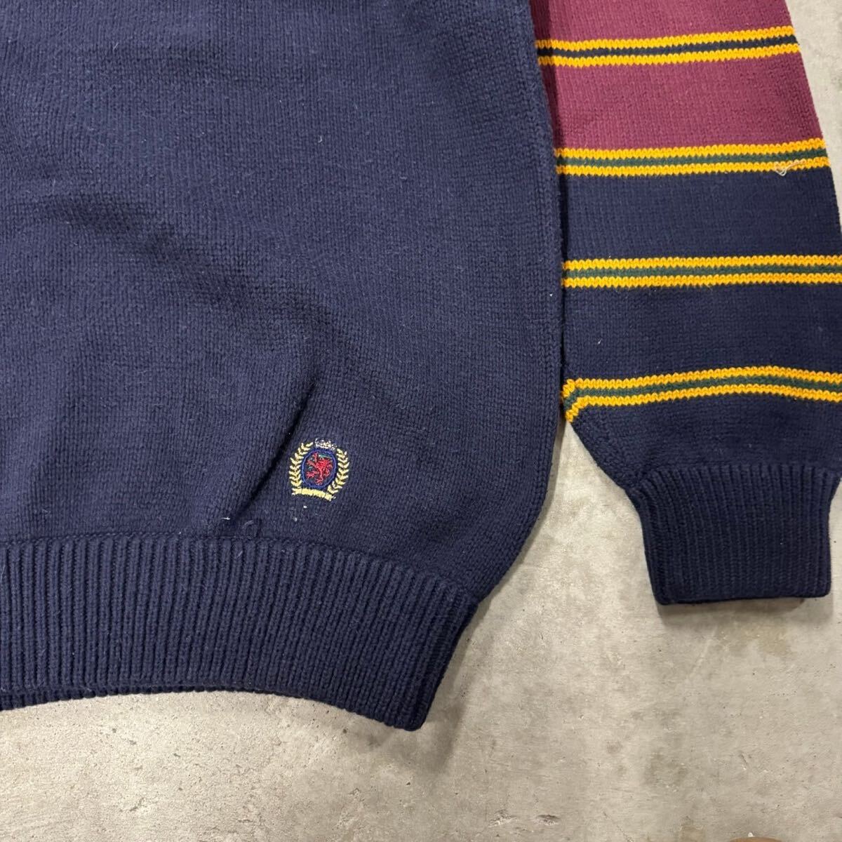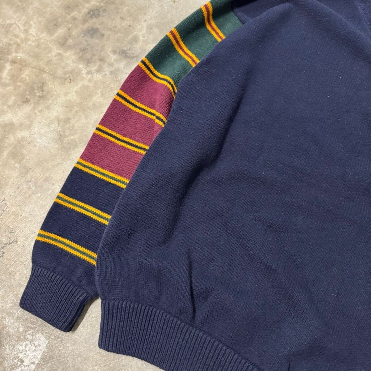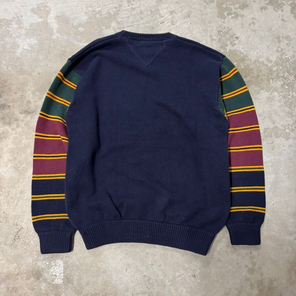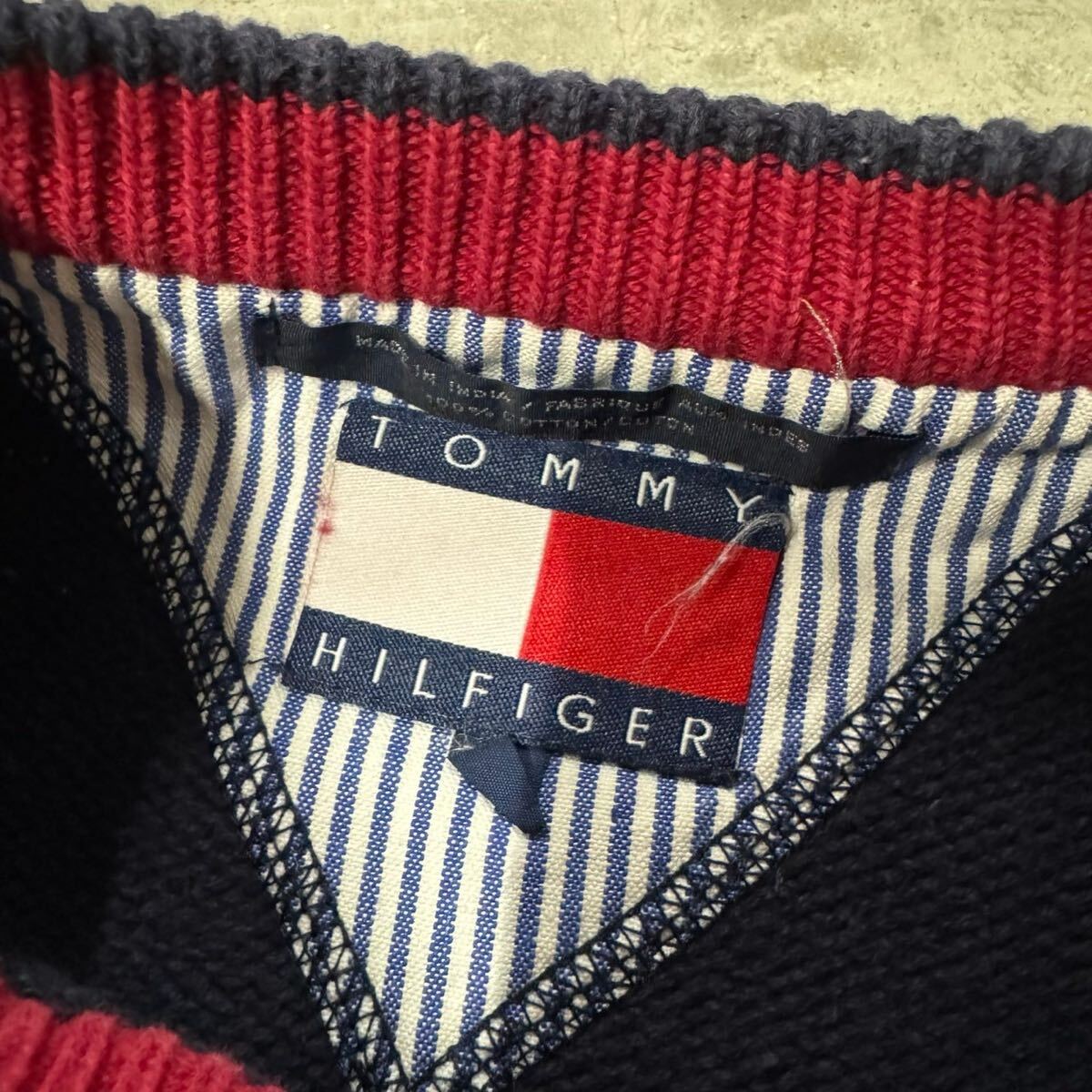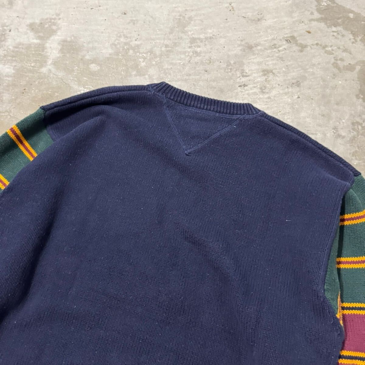 90s 00s Tommy Hilfiger コットンニット ネイビー ボーダー トミーヒルフィガー ヴィンテージ セーター ニットセーター 袖ボーダー Lサイズ