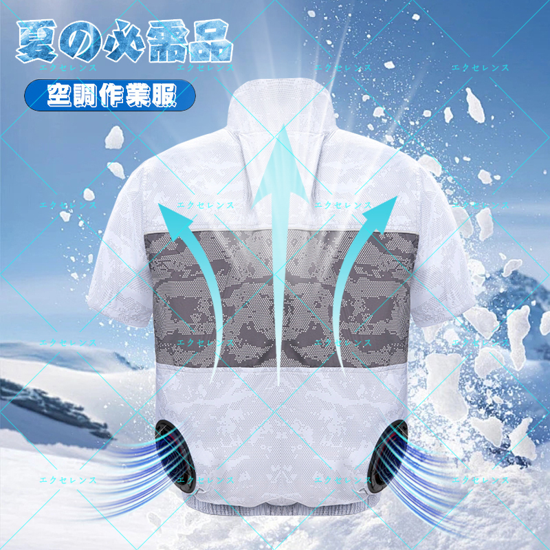 《4XLサイズ》迷彩グレー【24V超高出力】空調作業服 ファン付き 30000mAh大容量バッテリー付属 ファン付き作業服ベスト 薄型 -M908