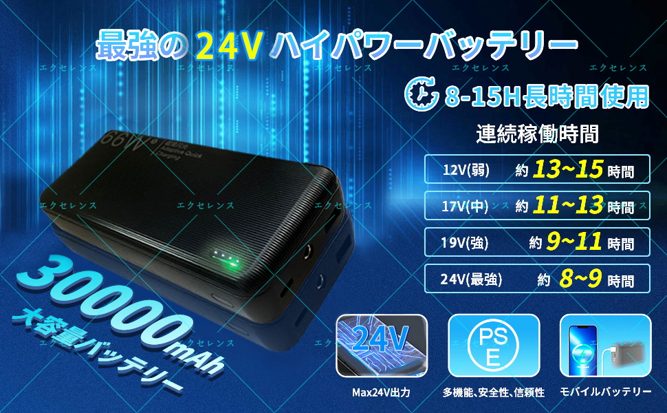 ★【24V超高出力&30000mAh大容量&4段階風量調】24V高出力バッテリーは、暑い夏の作業環境を一変するパワフルな大風量を実現!更に、30000mAhの大容量があり、24Vで10~12時間まで連続稼働できます。驚くほどの爆風が、より長時間維持できます。