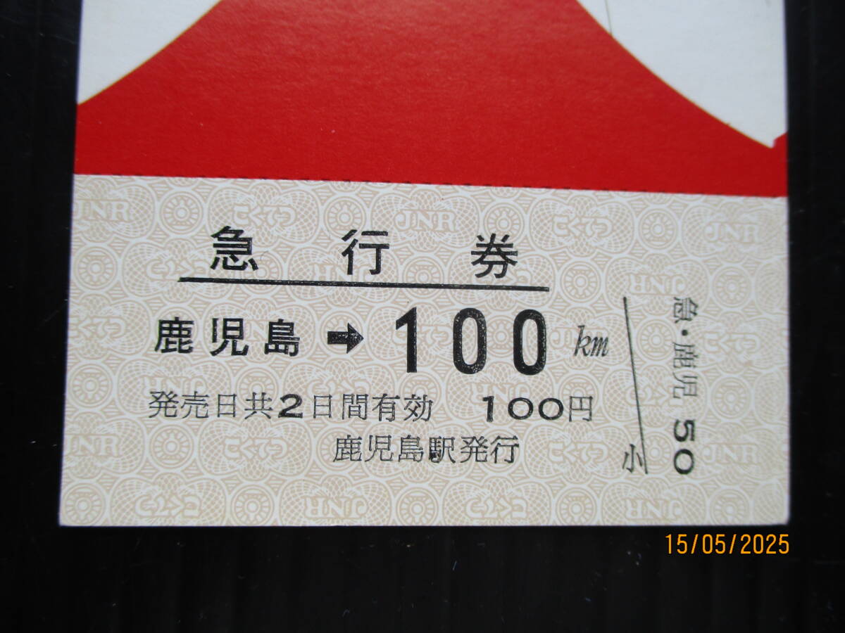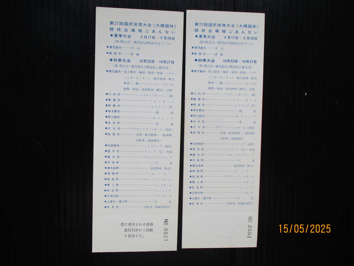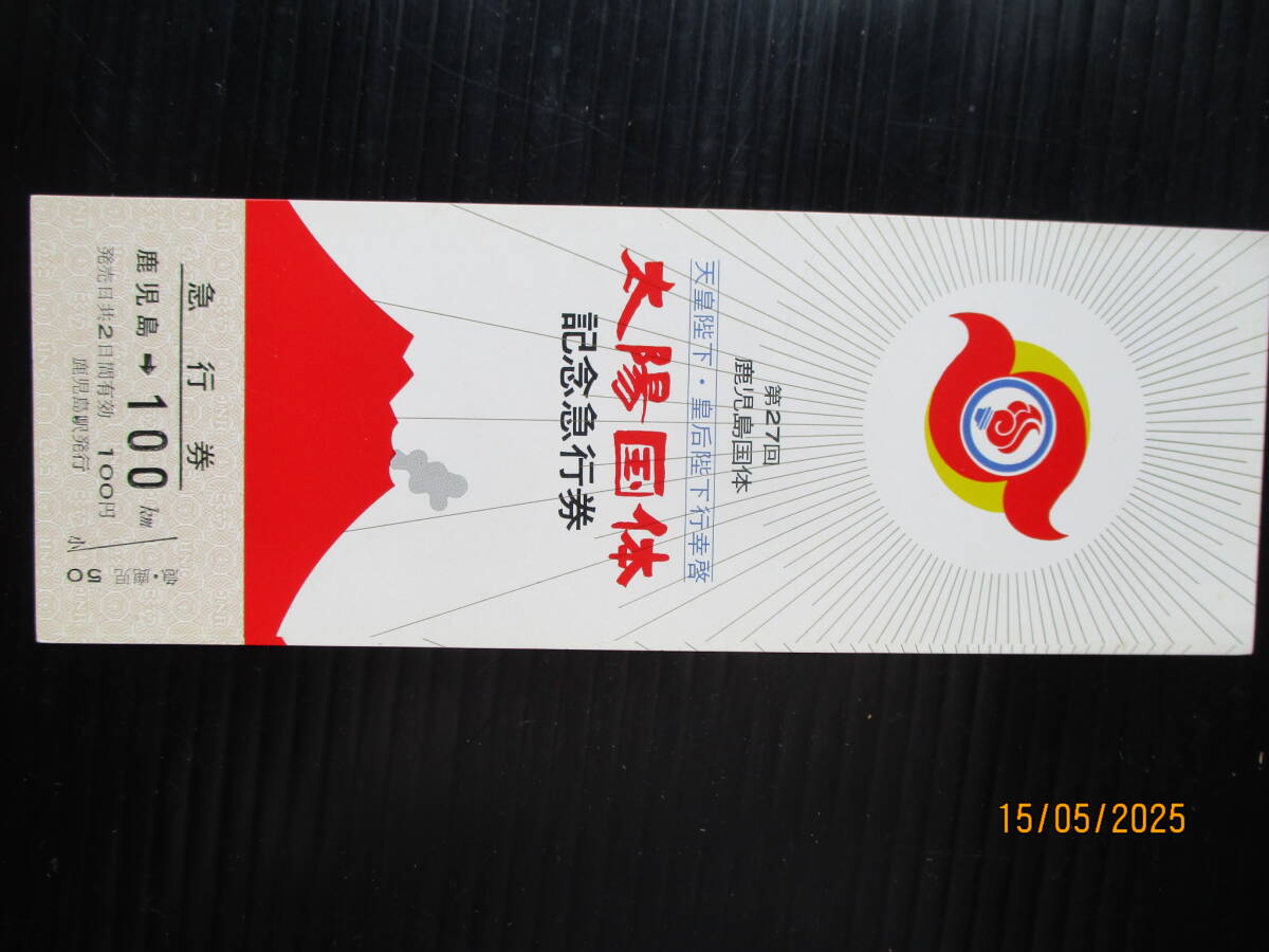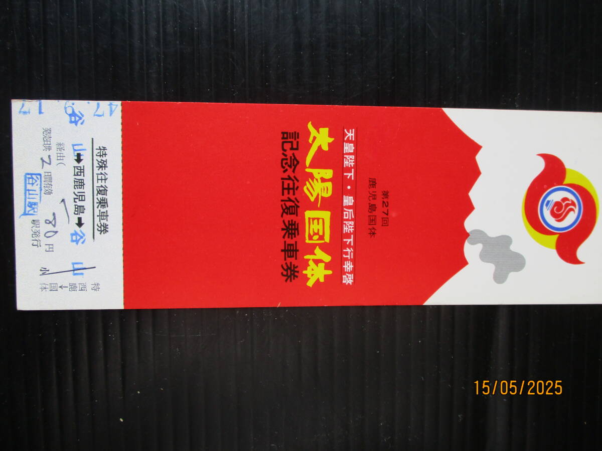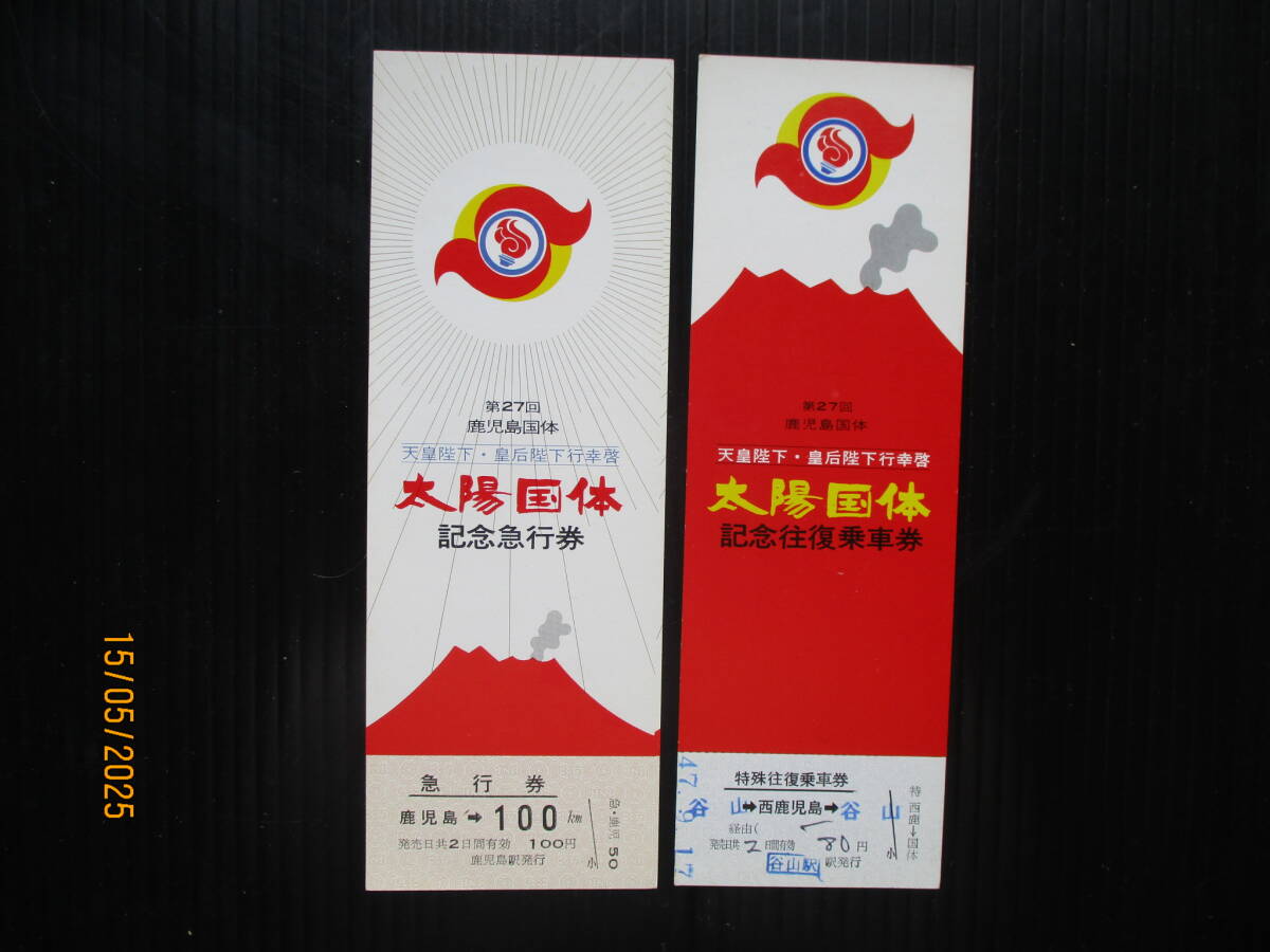 昭和47年6月  谷山駅発行「太陽国体 記念往復乗車券」& 鹿児島駅発行「太陽国体 記念急行券」各1枚