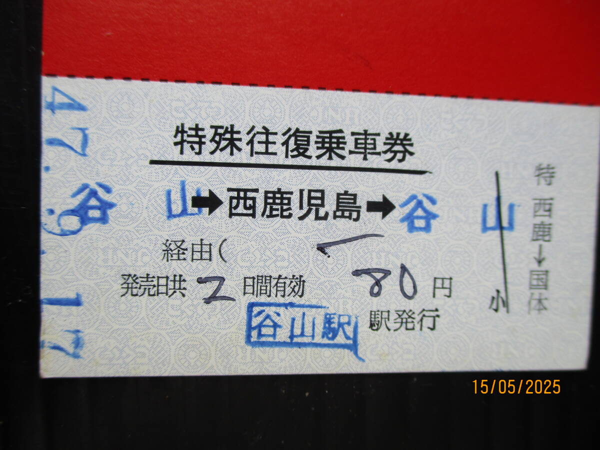 昭和47年6月 谷山駅発行「太陽国体 記念往復乗車券」& 鹿児島駅発行「太陽国体 記念急行券」各1枚