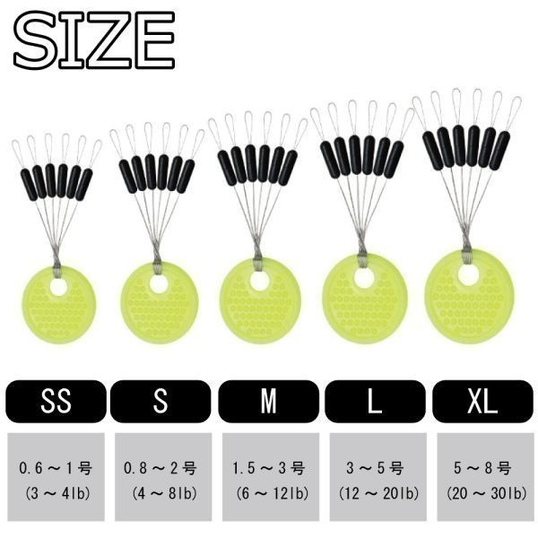 ※サイズは目安です。ウキ止めがずれてしまう場合、ワンサイズ小さめでご使用頂くか、ダブル掛けにてご使用お願い致します。