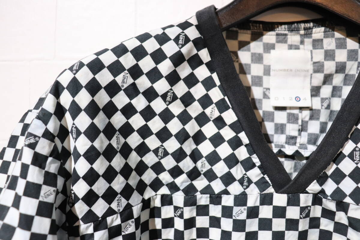 2000SS 初期 Number (N)ine ナンバーナイン Extra Heavy エクストラヘヴィ期 市松模様 チェッカーフラッグ柄 半袖シャツ ブラウス 3 黒白