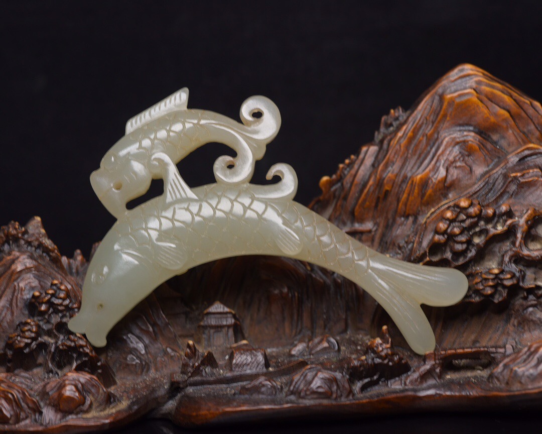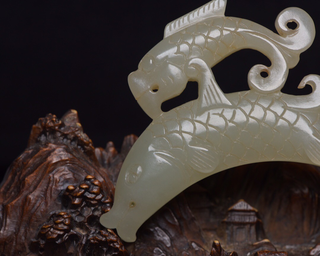 | 【蔵友館蔵品・和田玉製・細密彫・玉魚・置物・賞物】・古董品・中国古玩・時代物・希少珍品・中国時代美術 |