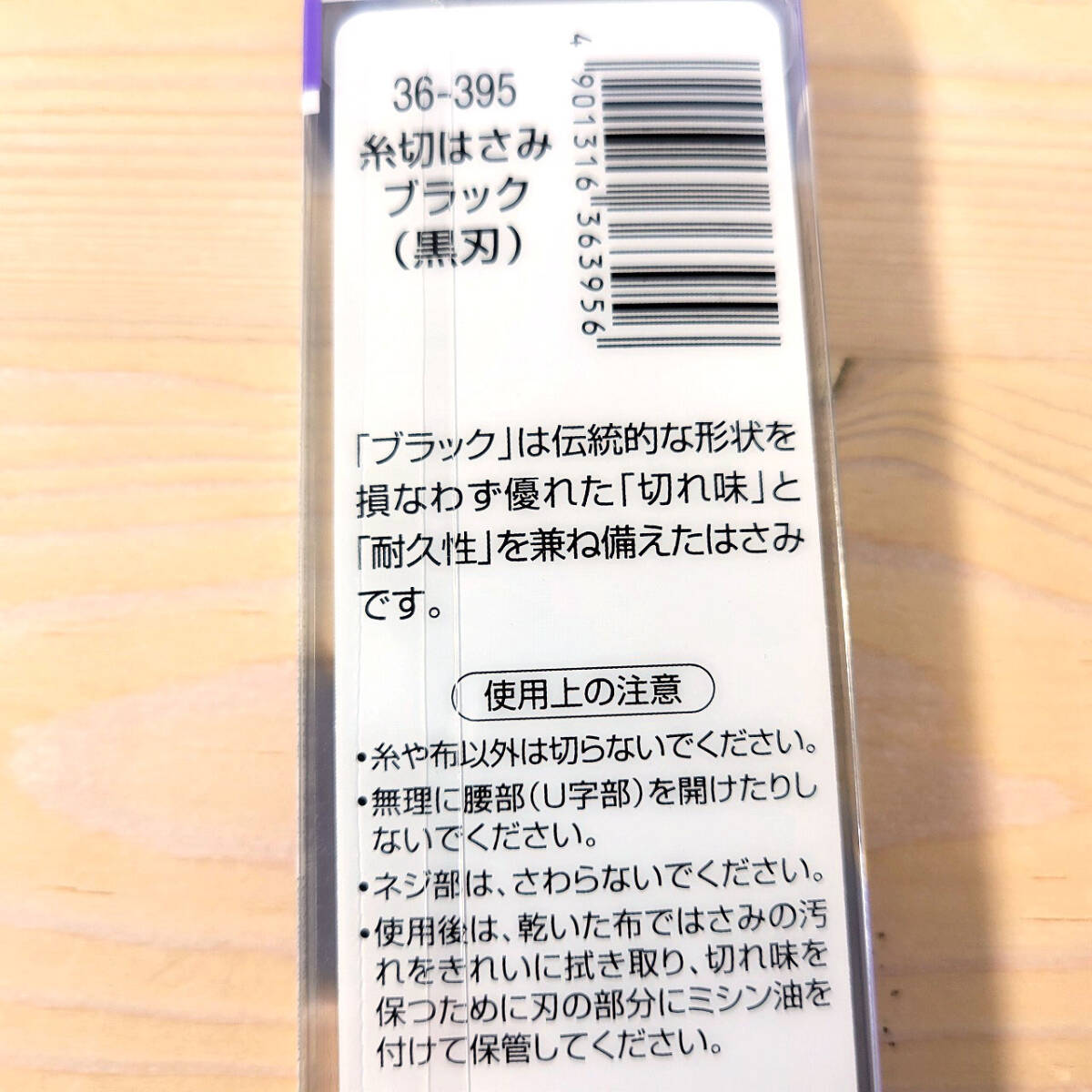 | 糸切はさみ「ブラック」(黒刃くろは) 10.5cm CL36-395 柄部は樹脂、刃部は鋼の、クロバーの技術で実現した抜群の軽さと耐久性のはさみ。 黒刃。グッドデザインに選ばれたヒット商品。 糸切はさみ「ブラック」シリーズのスタンダードタイプです。 | |