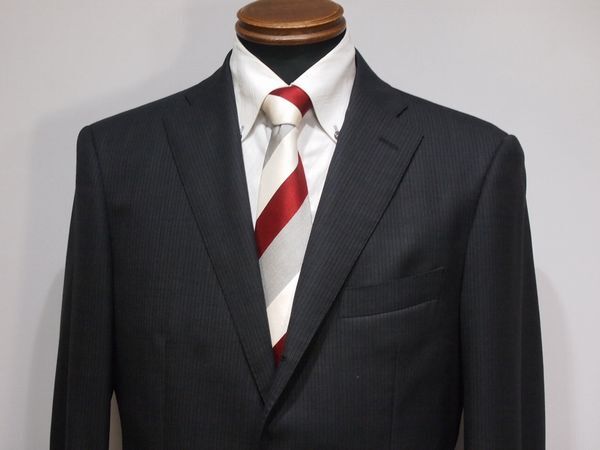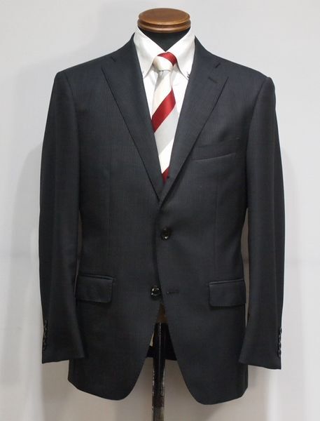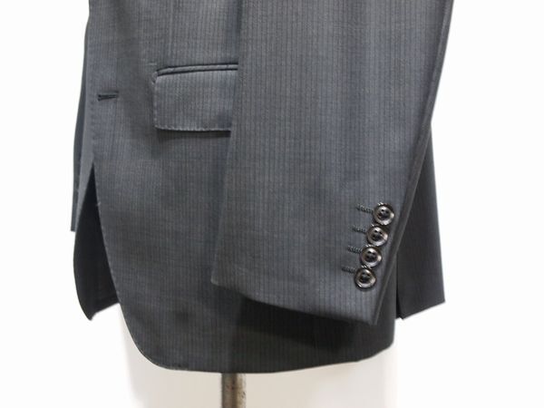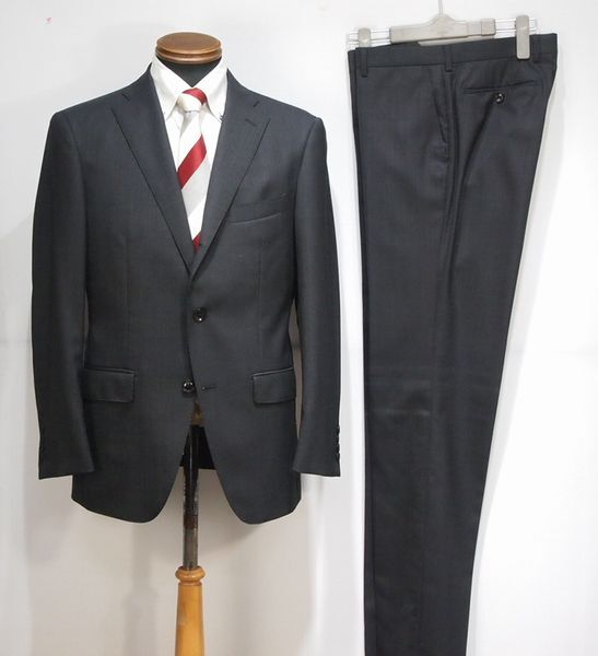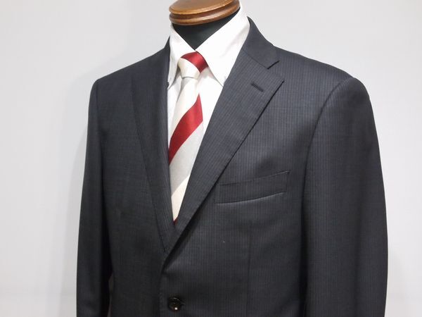 新入荷■こだわり商品■5519■ATHLEIC super100s 背抜きノータック 段返り3っ釦スーツ■AB5■チャコールグレー■ストライプ■