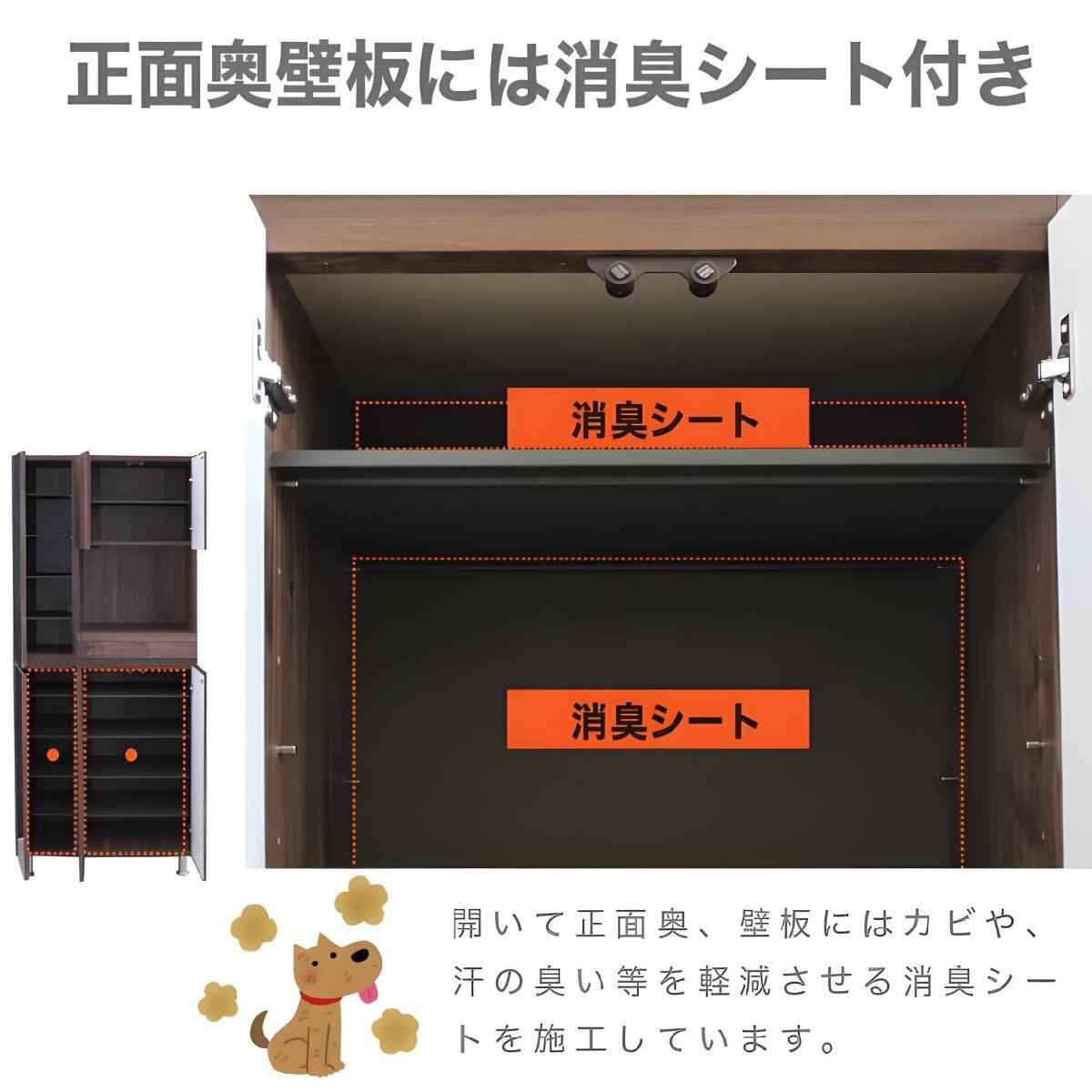 国産 幅74cm 高さ185cm オープンスペース 引き出し 下駄箱 靴箱 シューズボックス 木製 完成品 ブラウン