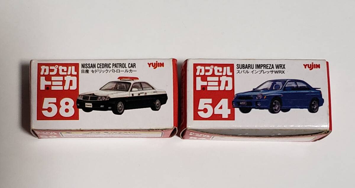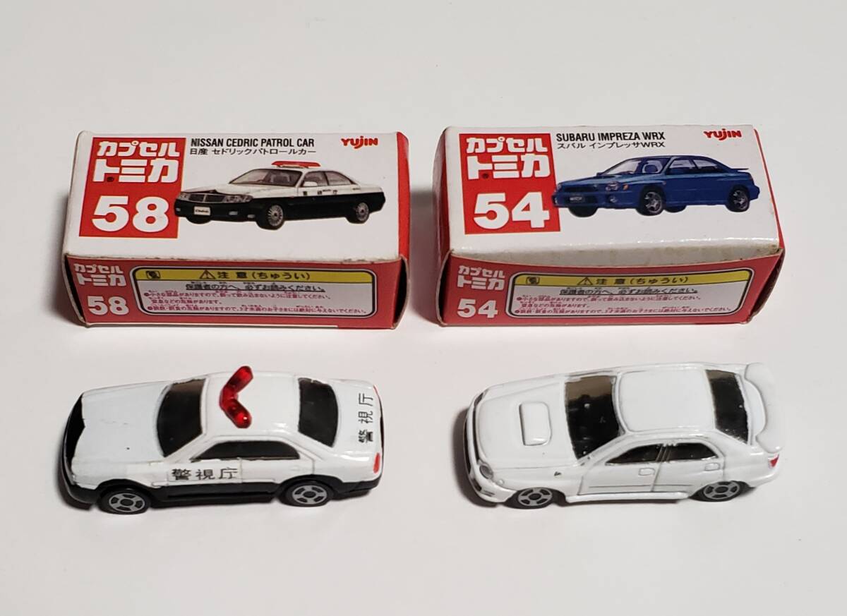 カプセルトミカ「日産 セドリックパトロールカー」と「スバル インプレッサWRX」2種セットです。