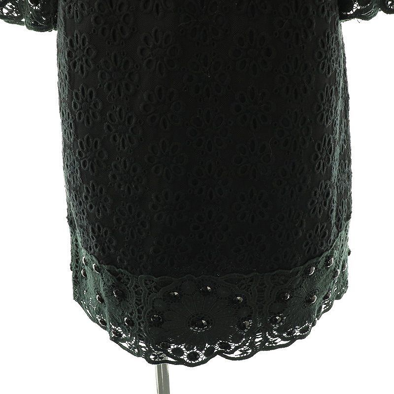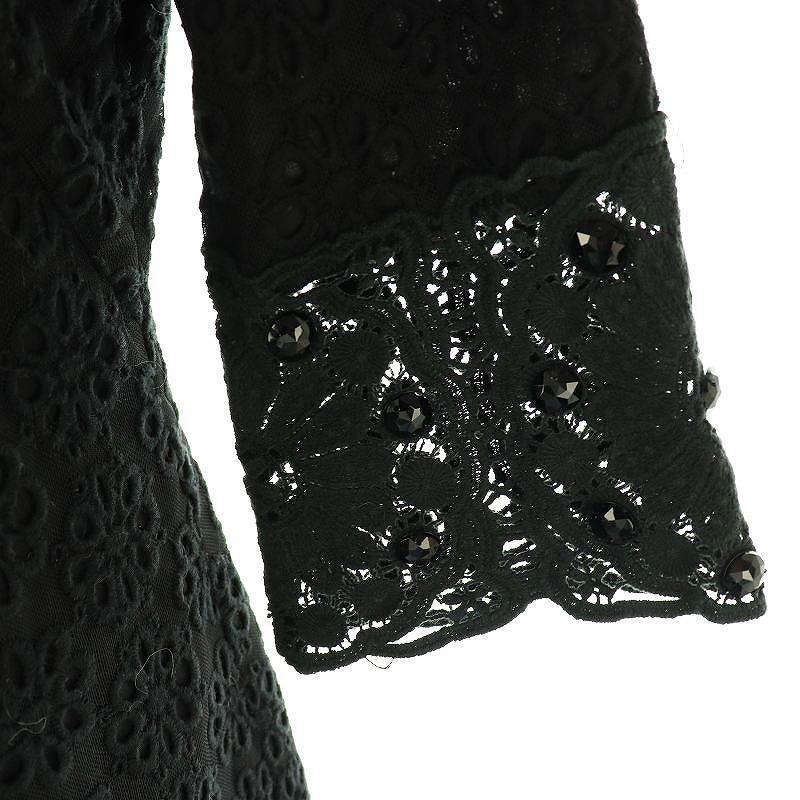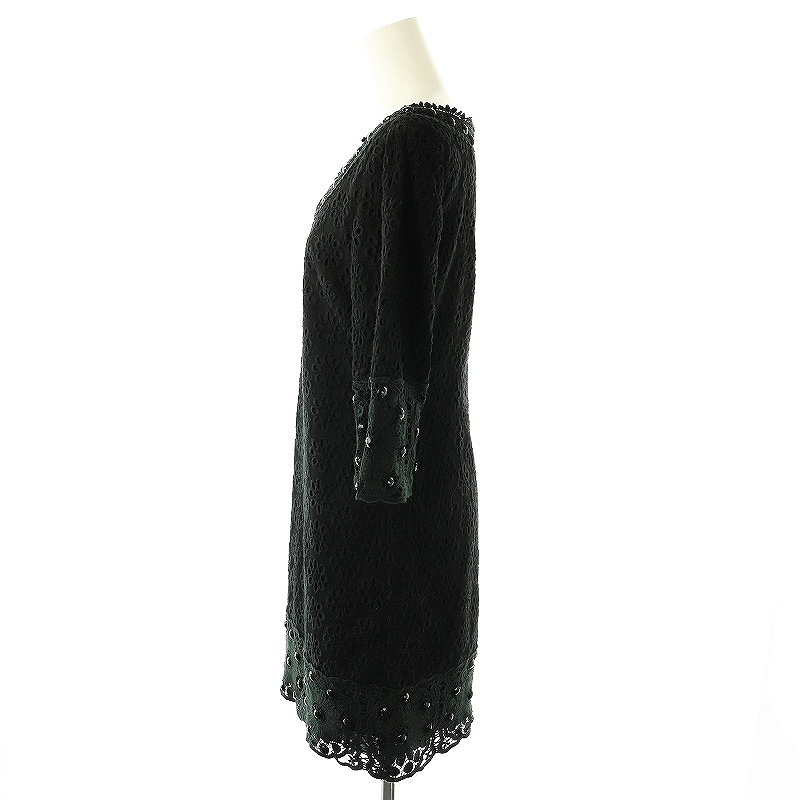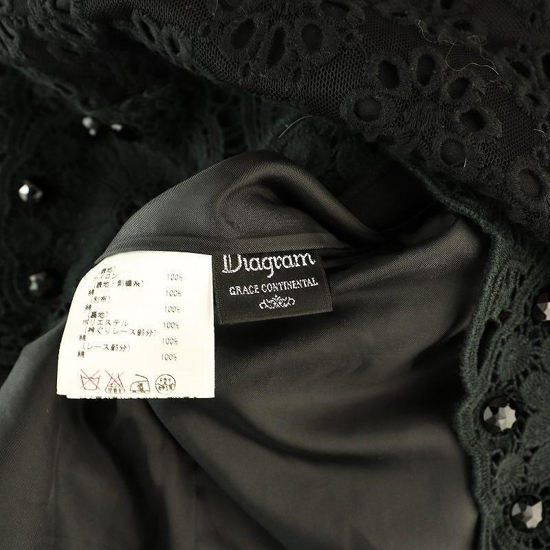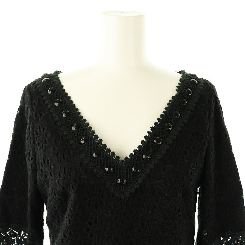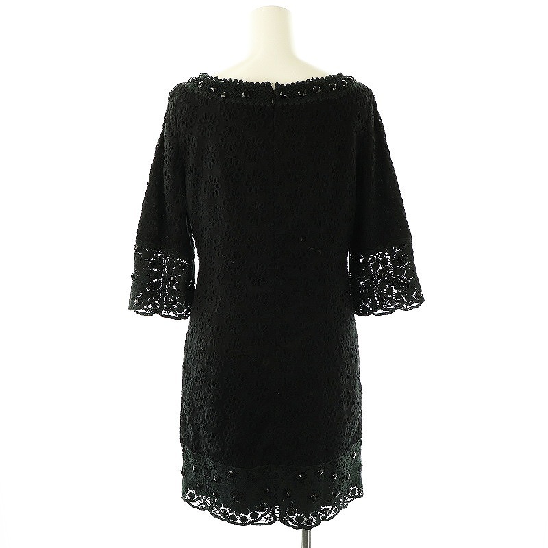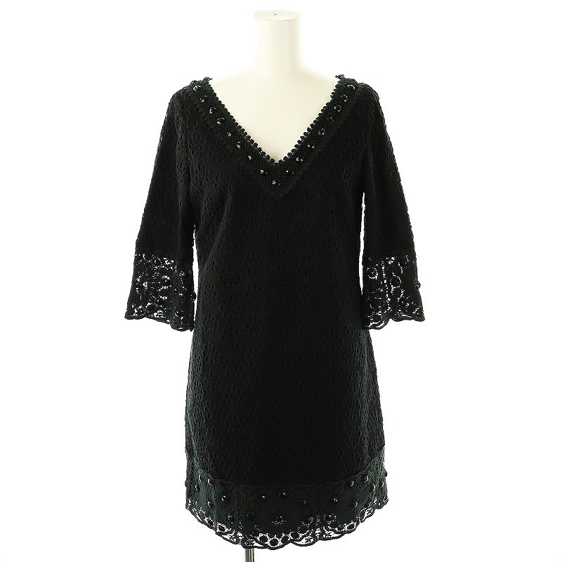 ダイアグラム グレースコンチネンタル Diagram GRACE CONTINENTAL ワンピース ミニ 七分袖 Vネック 刺繍 ビジュー 36 黒