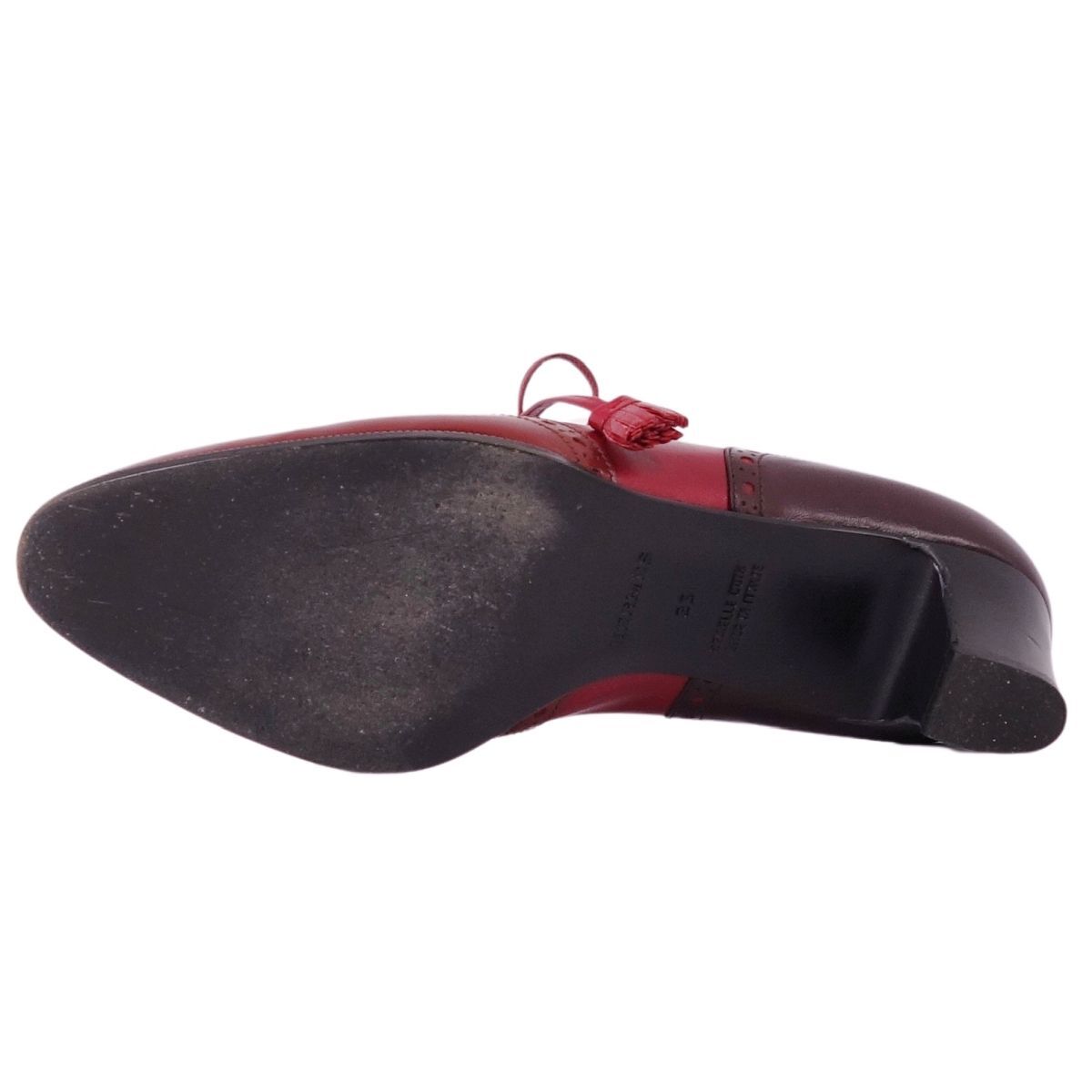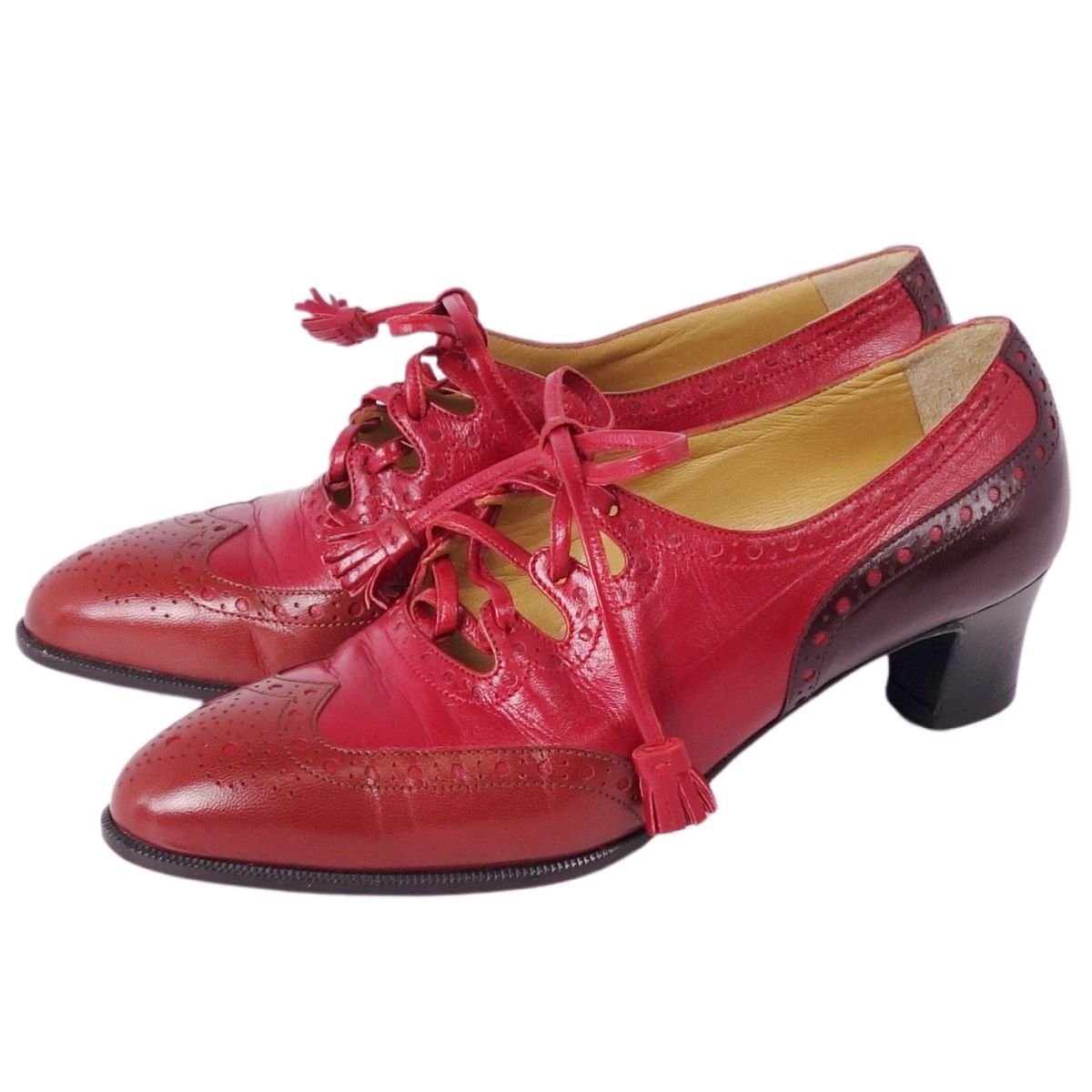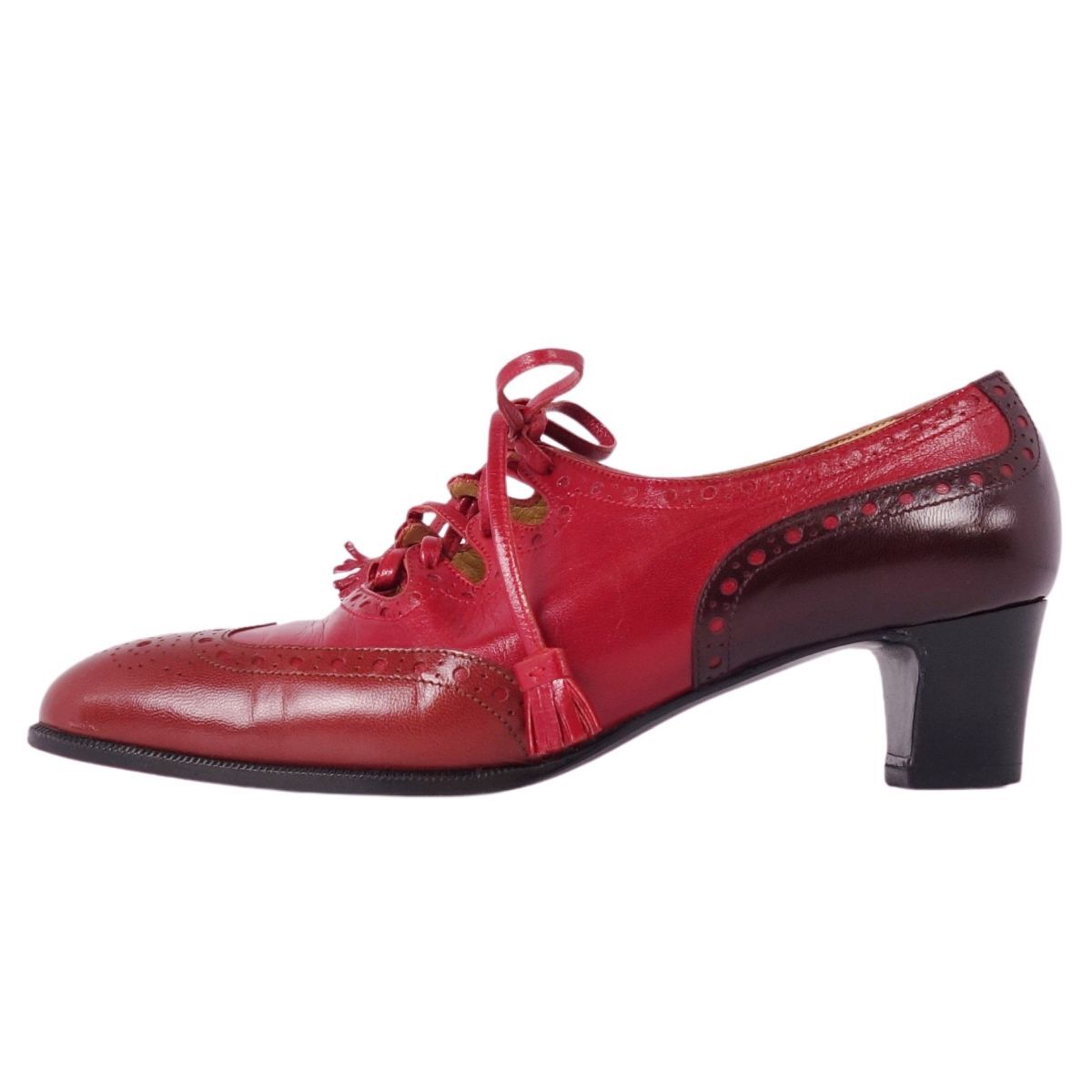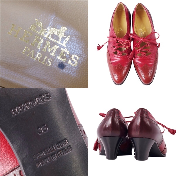 | 美品 Vintage エルメス HERMES パンプス レザーシューズ メダリオン リボン ヒール シューズ レディース 35(22cm)レッド |