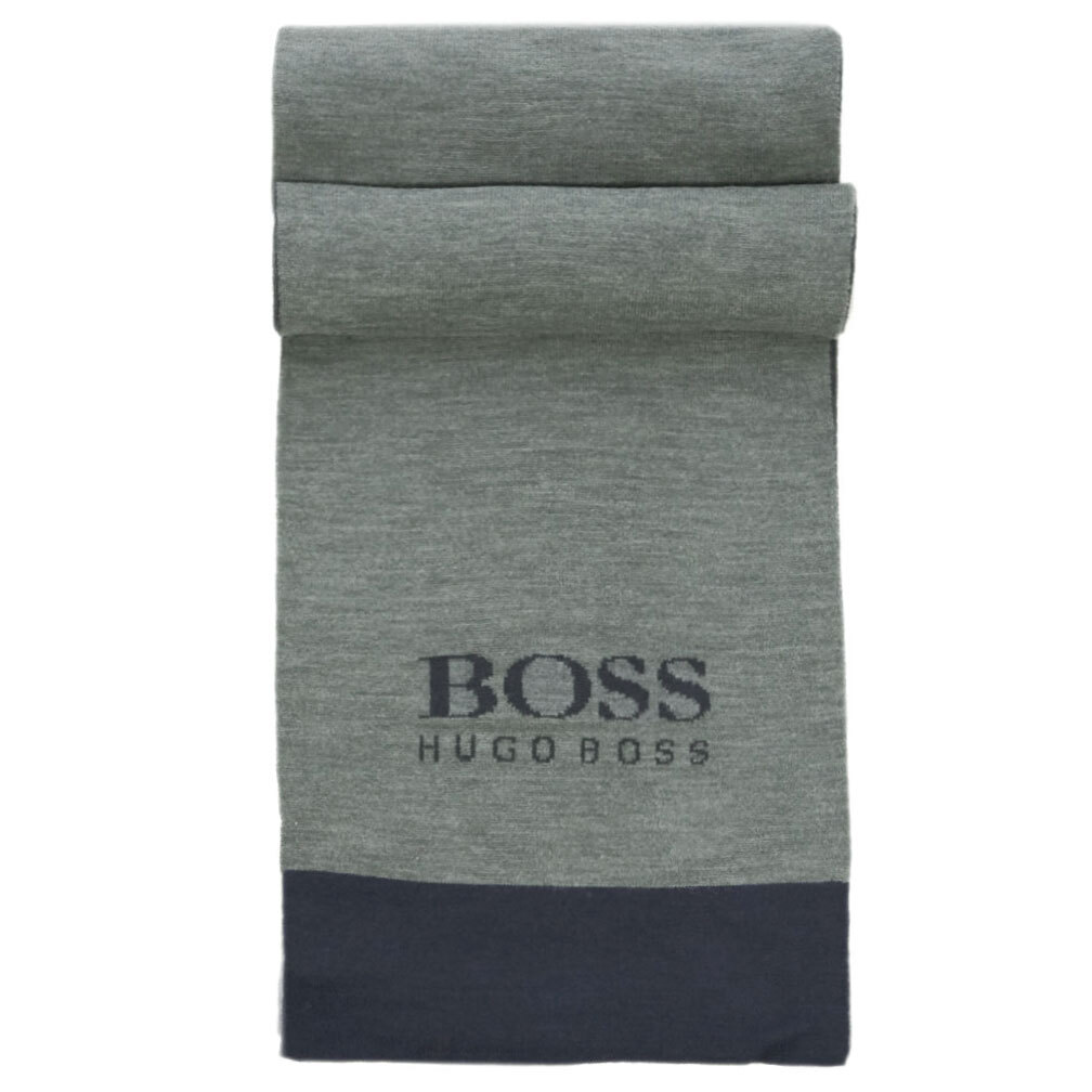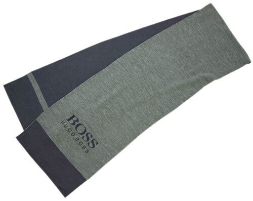 ●商品名: HUGO BOSS メンズ マフラー バイカラー ロゴ ネイビー/杢グレー