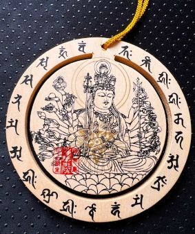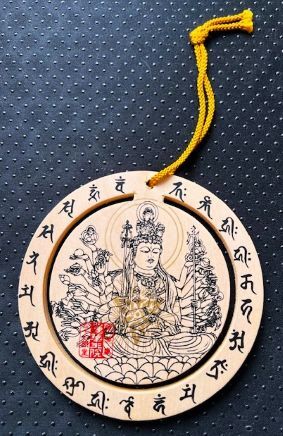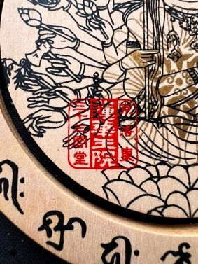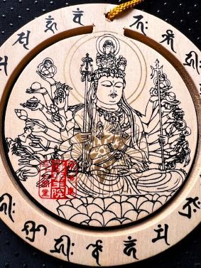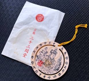 ●未使用、新品、袋入りの京都・三十三間堂の千手観音座像に梵字円形絵馬です