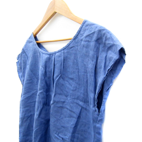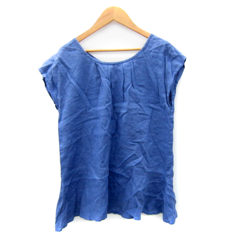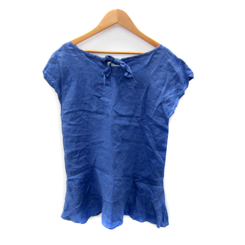 ビームスハート BEAMS HEART カットソー ノースリーブ ラウンドネック 無地 リボン 麻 リネン 青 ブルー /SY36 レディース