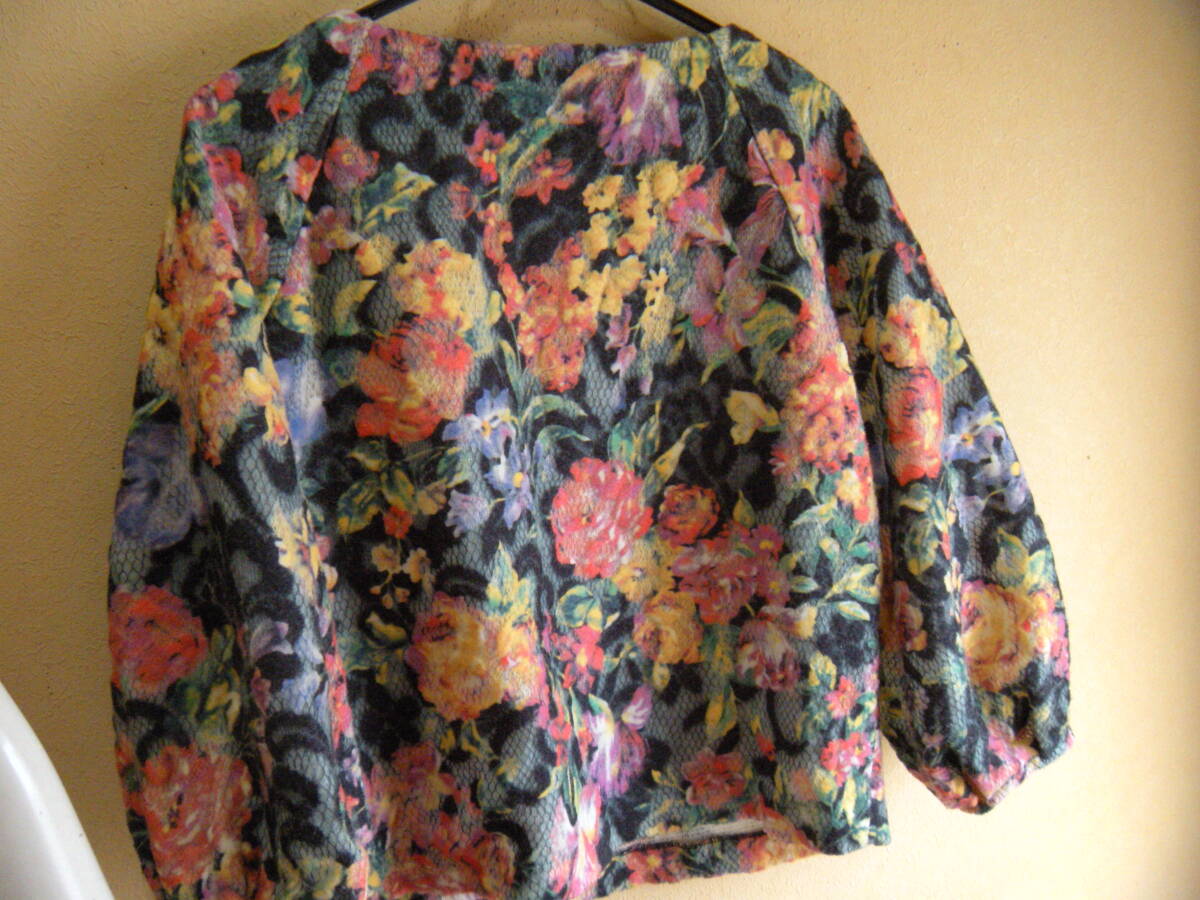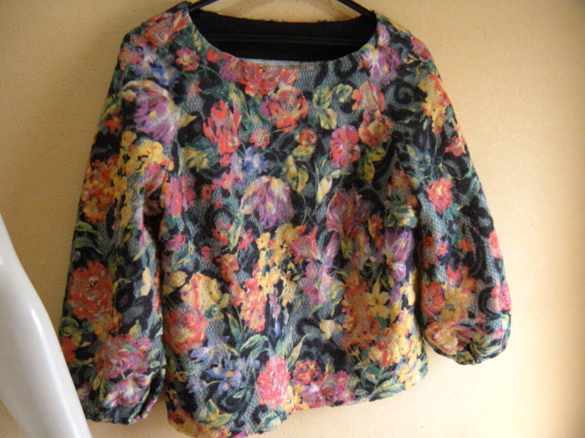 Color(色):画像参照 Size(表記サイズ):画像参照 肩幅cm、身幅52cm、着丈51cm、袖丈cm (平置きで計測できる項目のみ記載) Material(素材):画像の表示参照 Condition(状態):着用感多少、目立つ程度は見られず、問題なくお使いいただけます。 a note(備考):柄も良く、袖のデザインも素敵です。 注)画像の白い丸はフラッシュの加減で、汚れなどではございません |